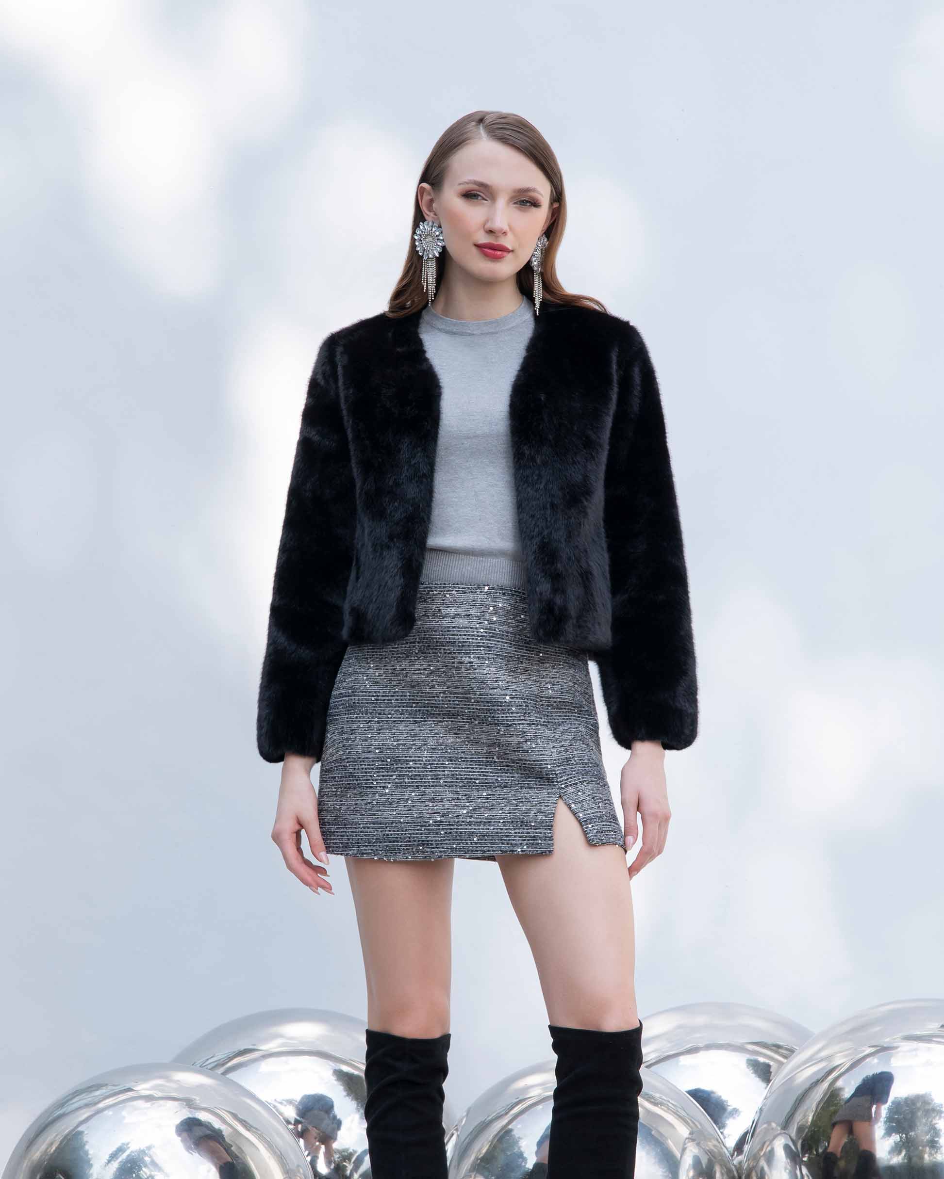 Abrigo corto efecto pelo, tacto suave, con bolsillos