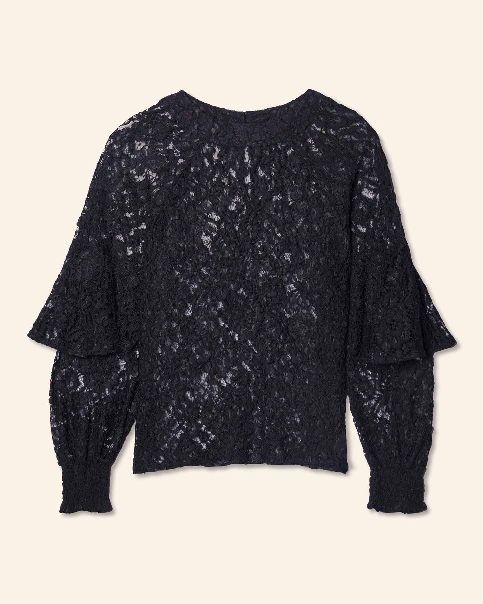 Blusa de encaje y olán, con manga larga
