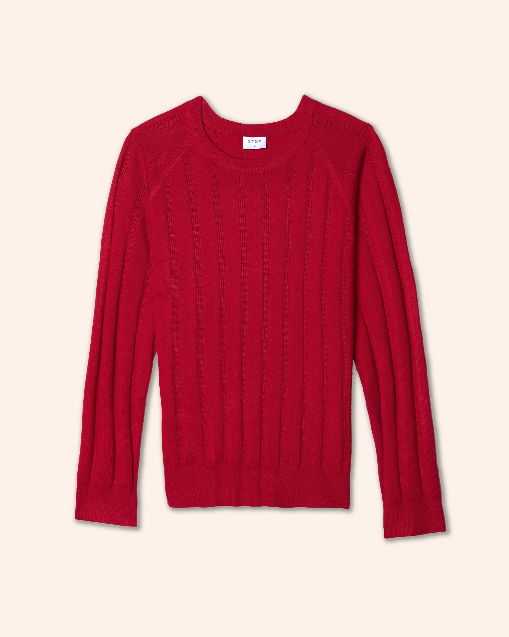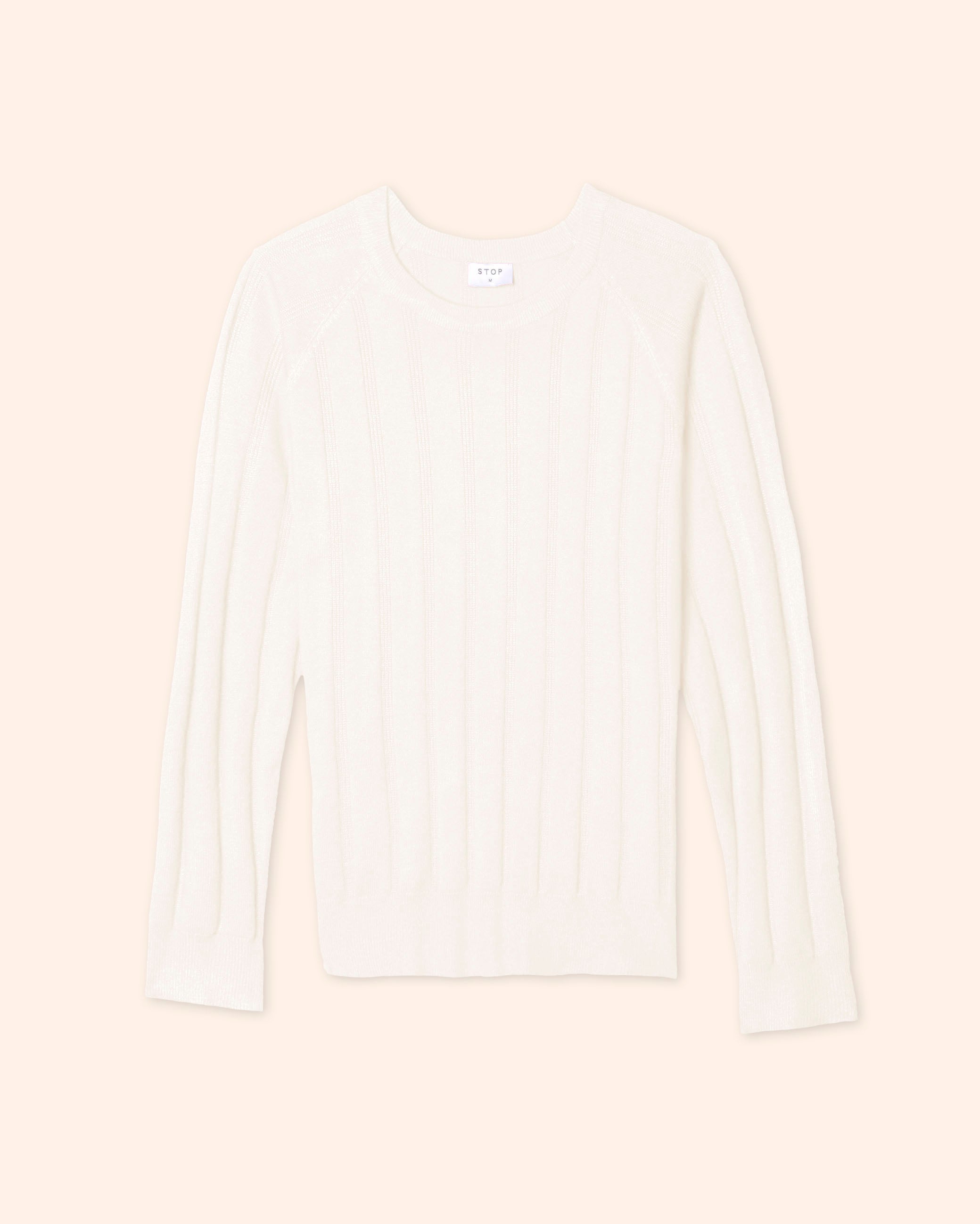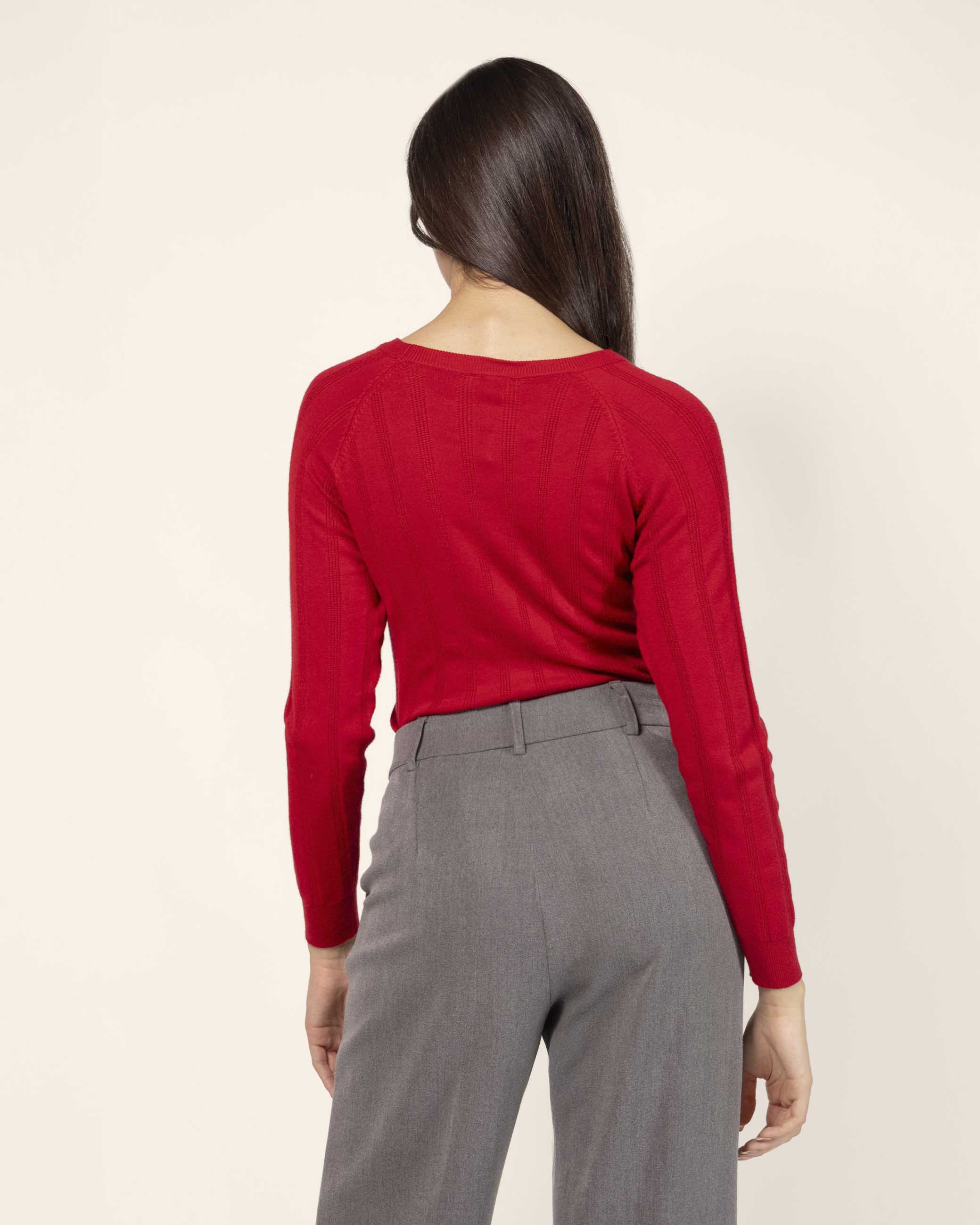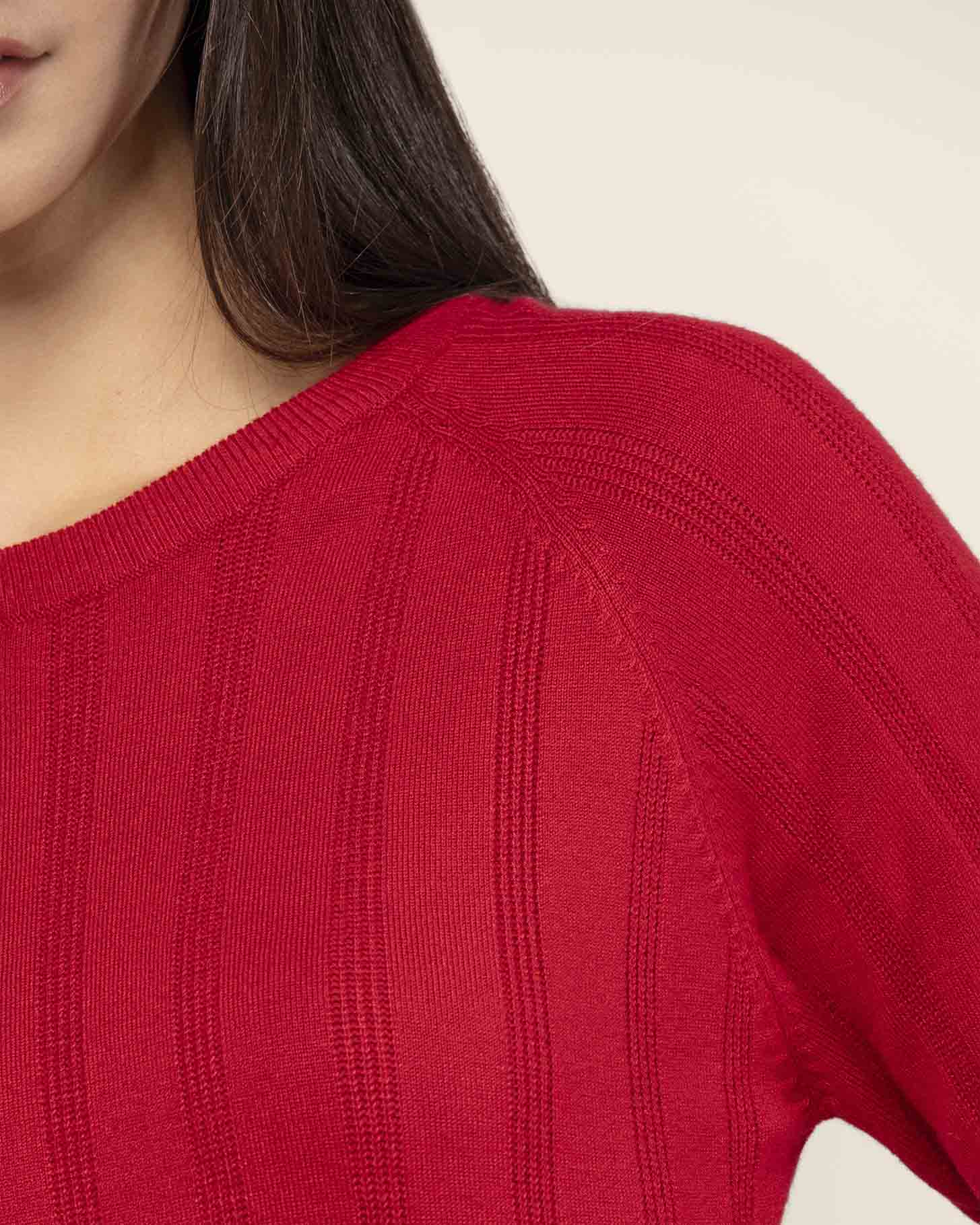 Blusa de punto, acanalada, manga ranglan, cuello redondo