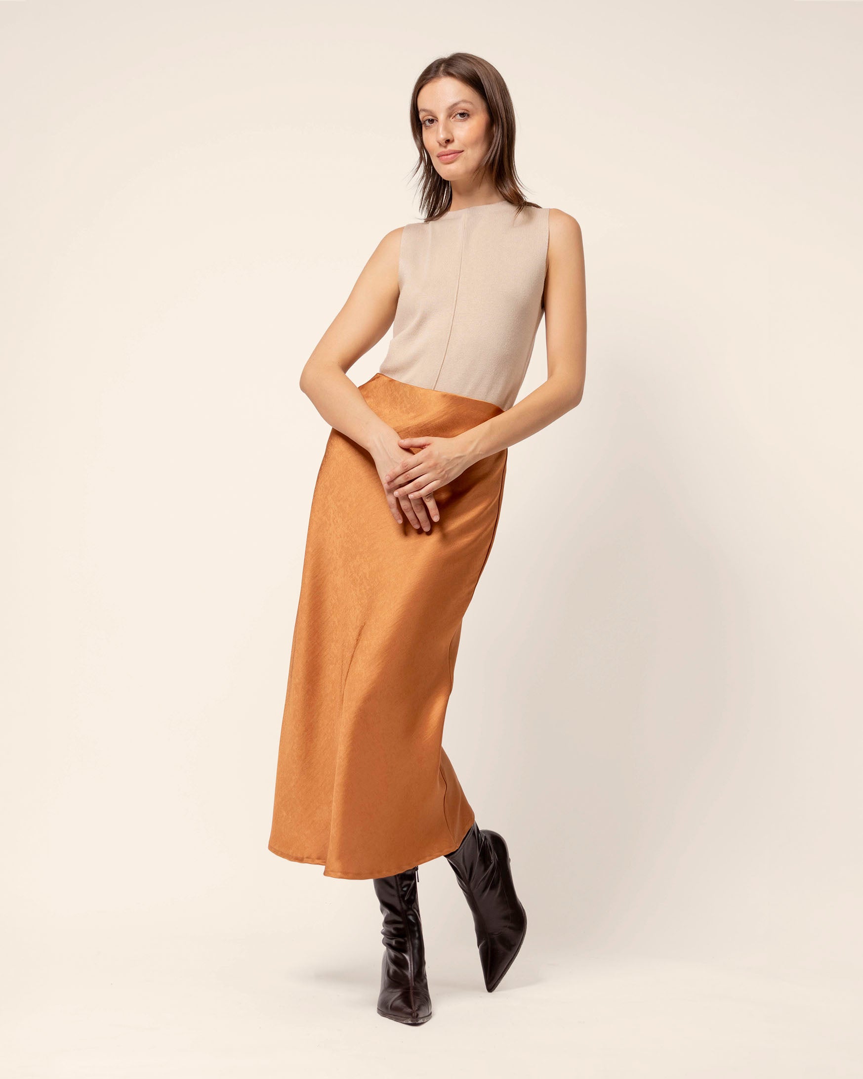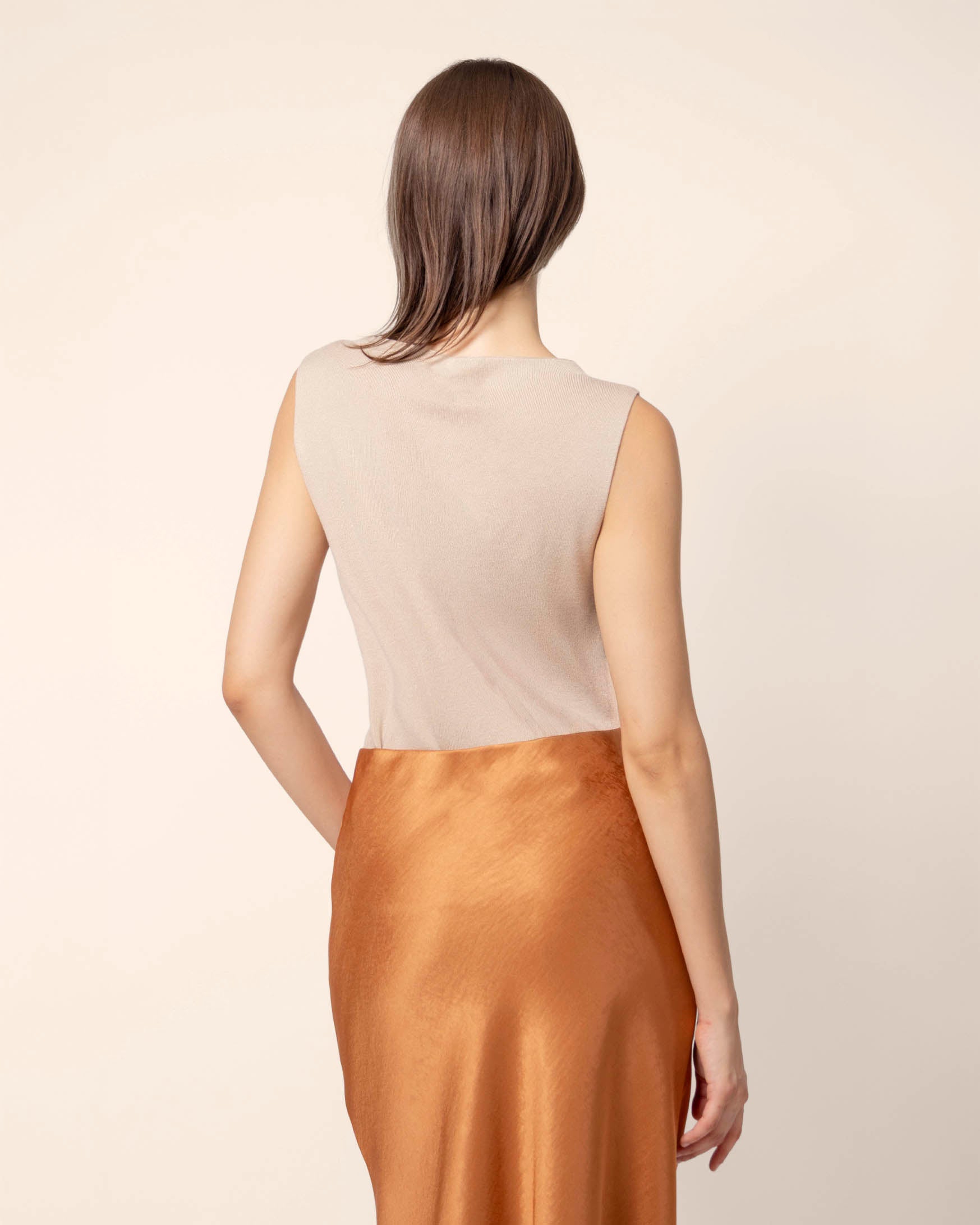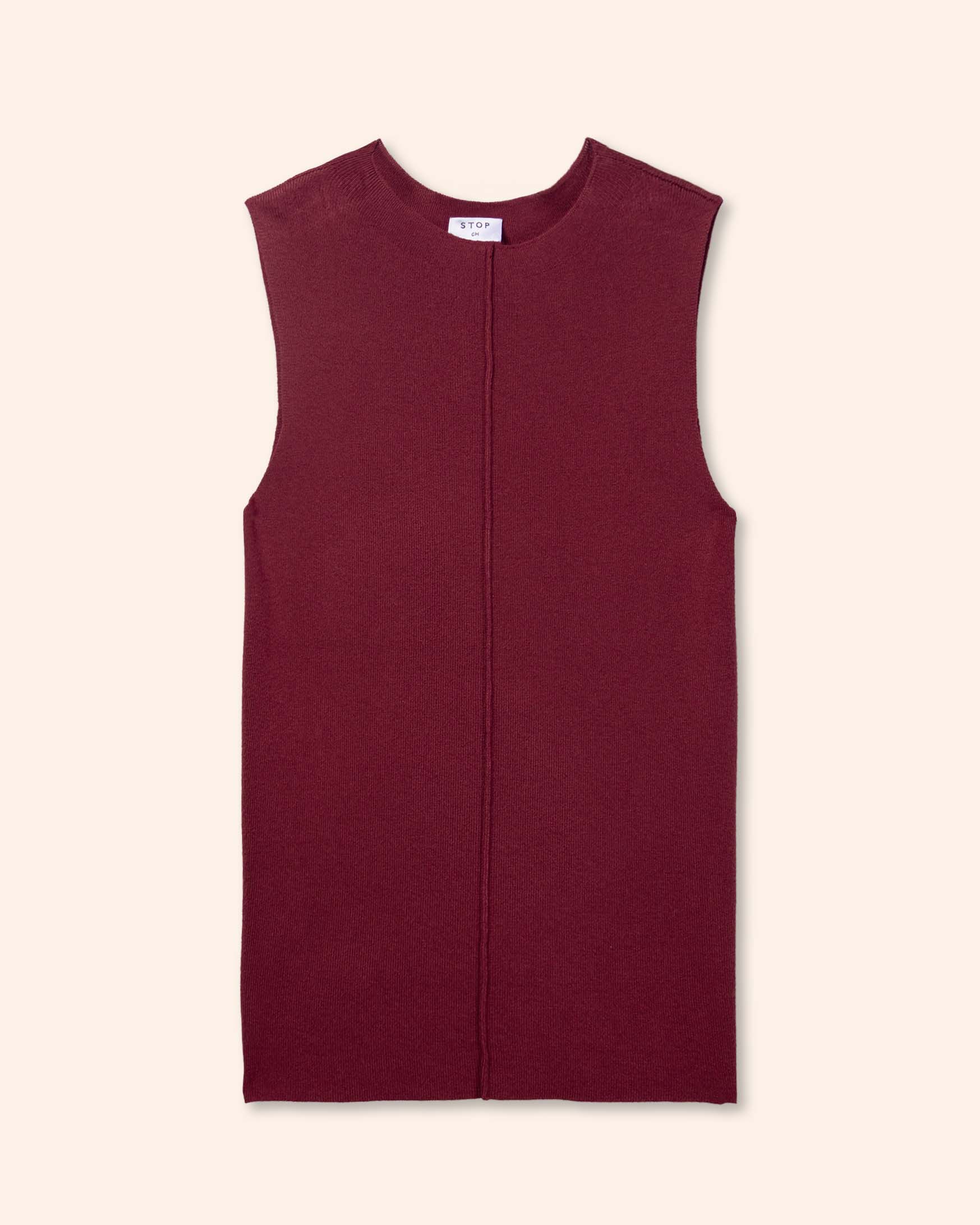 Blusa de punto, con línea al frente, sin mangas, cuello ojal