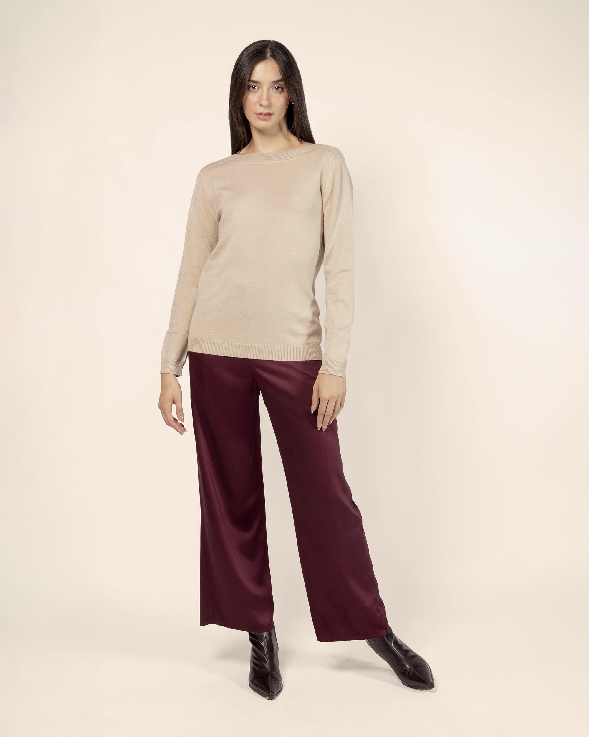 Blusa de punto, manga larga, cuello ojal con acanalado