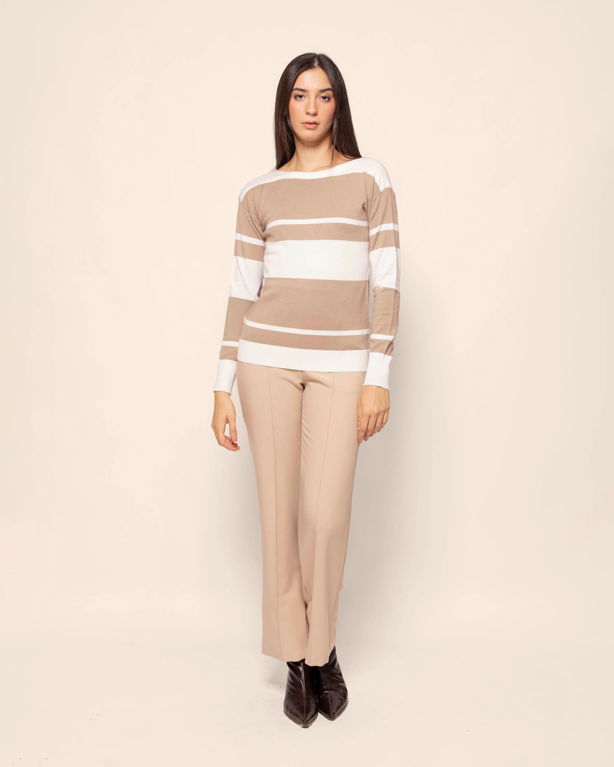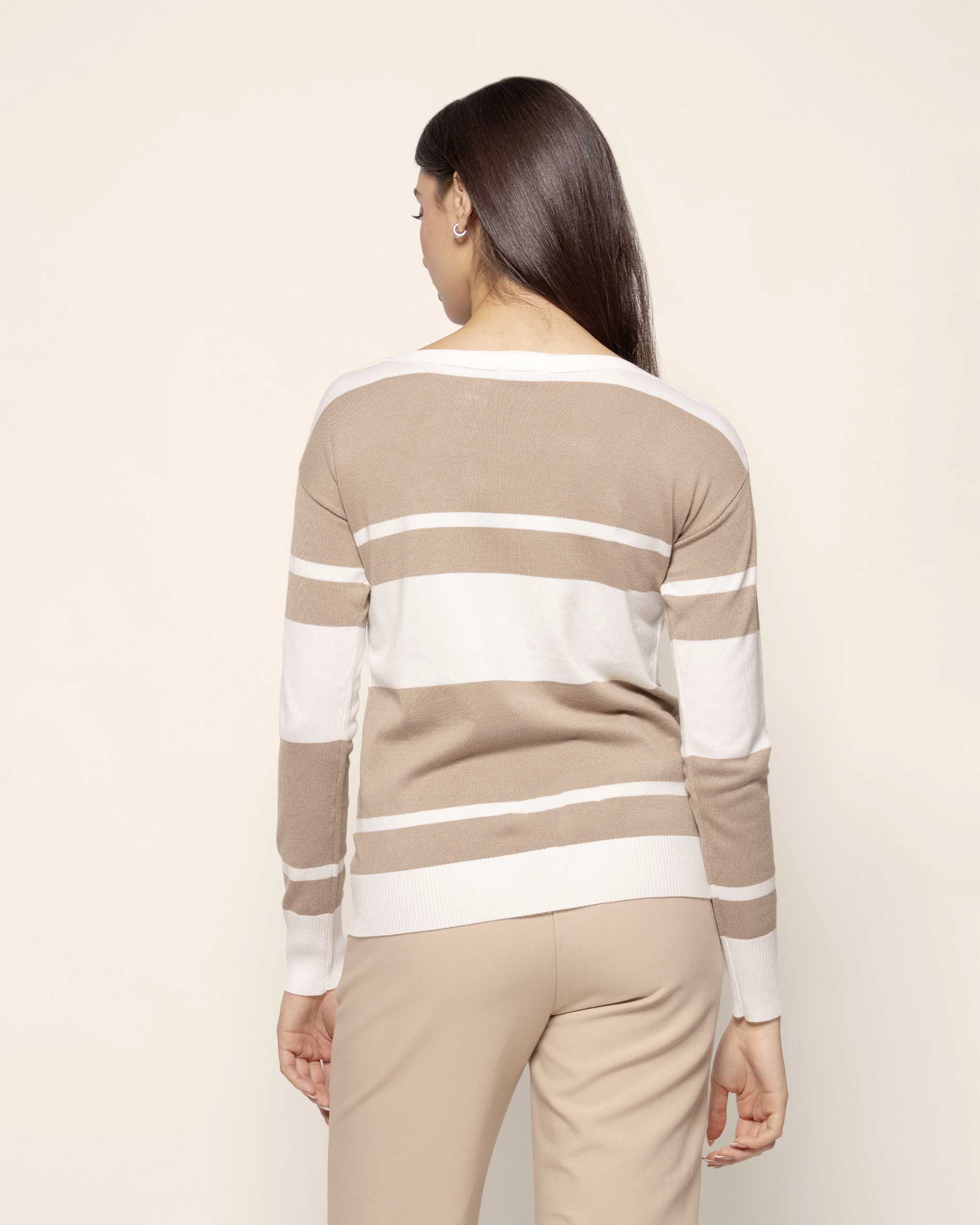 Blusa de punto, manga larga, a rayas, cuello ojal