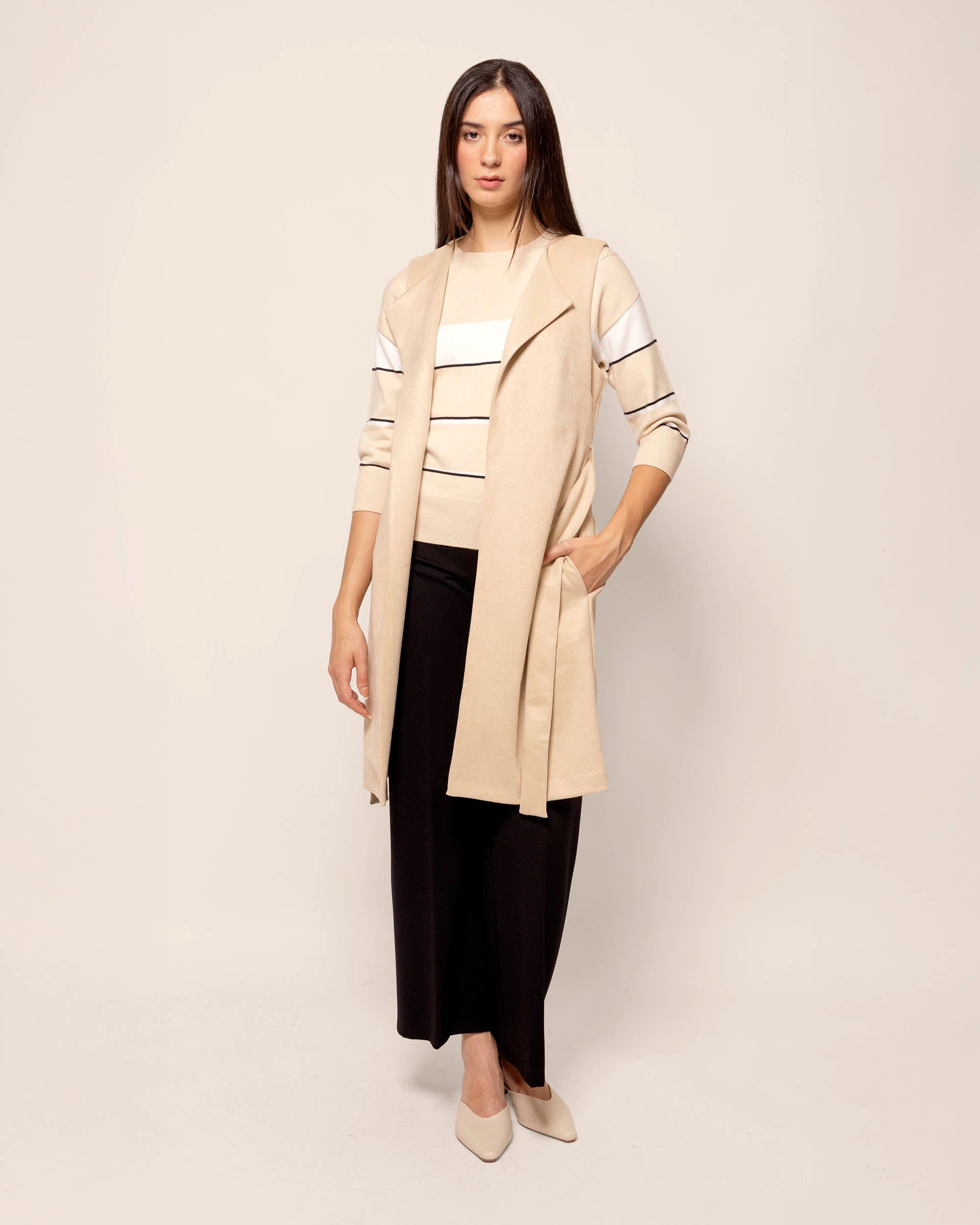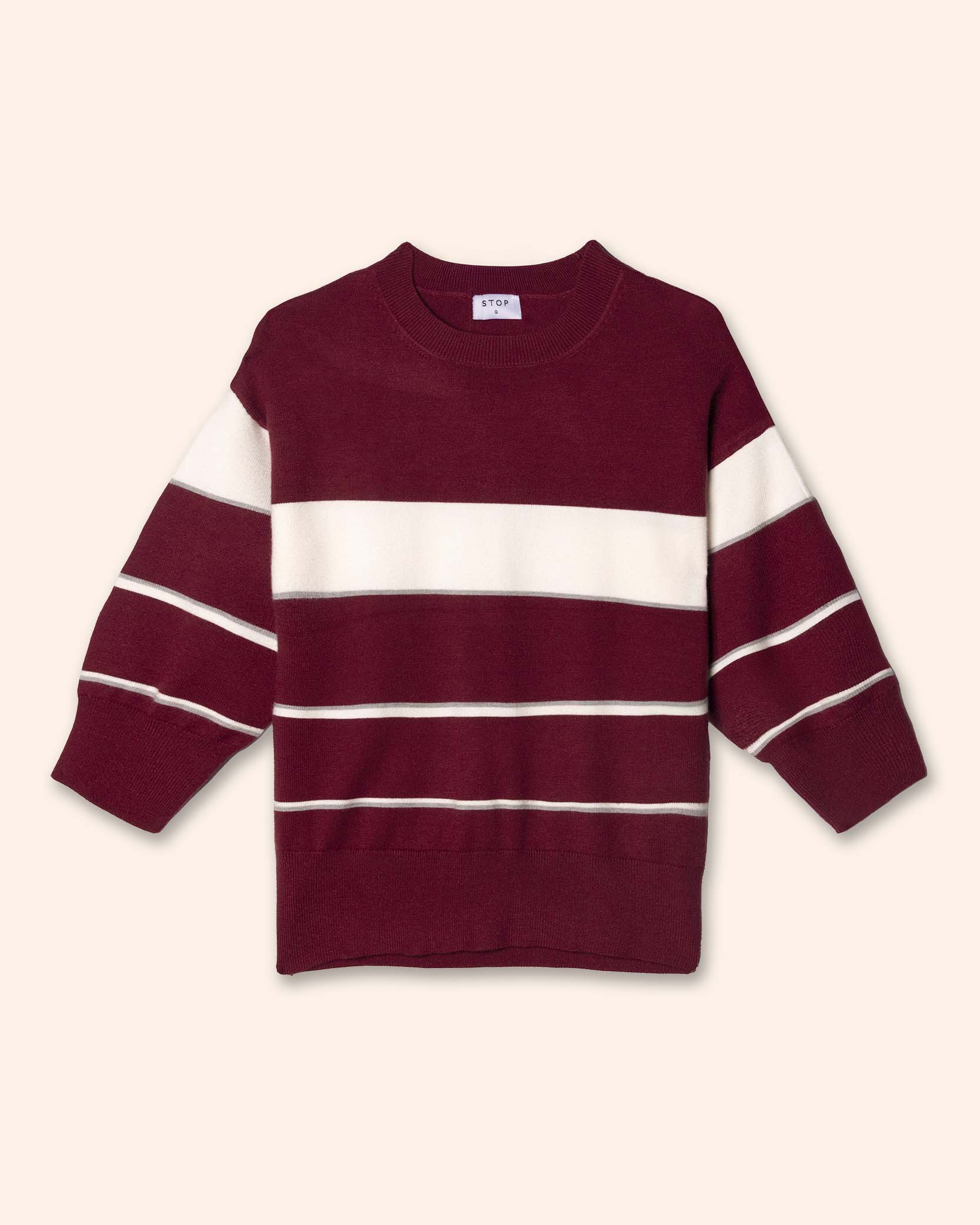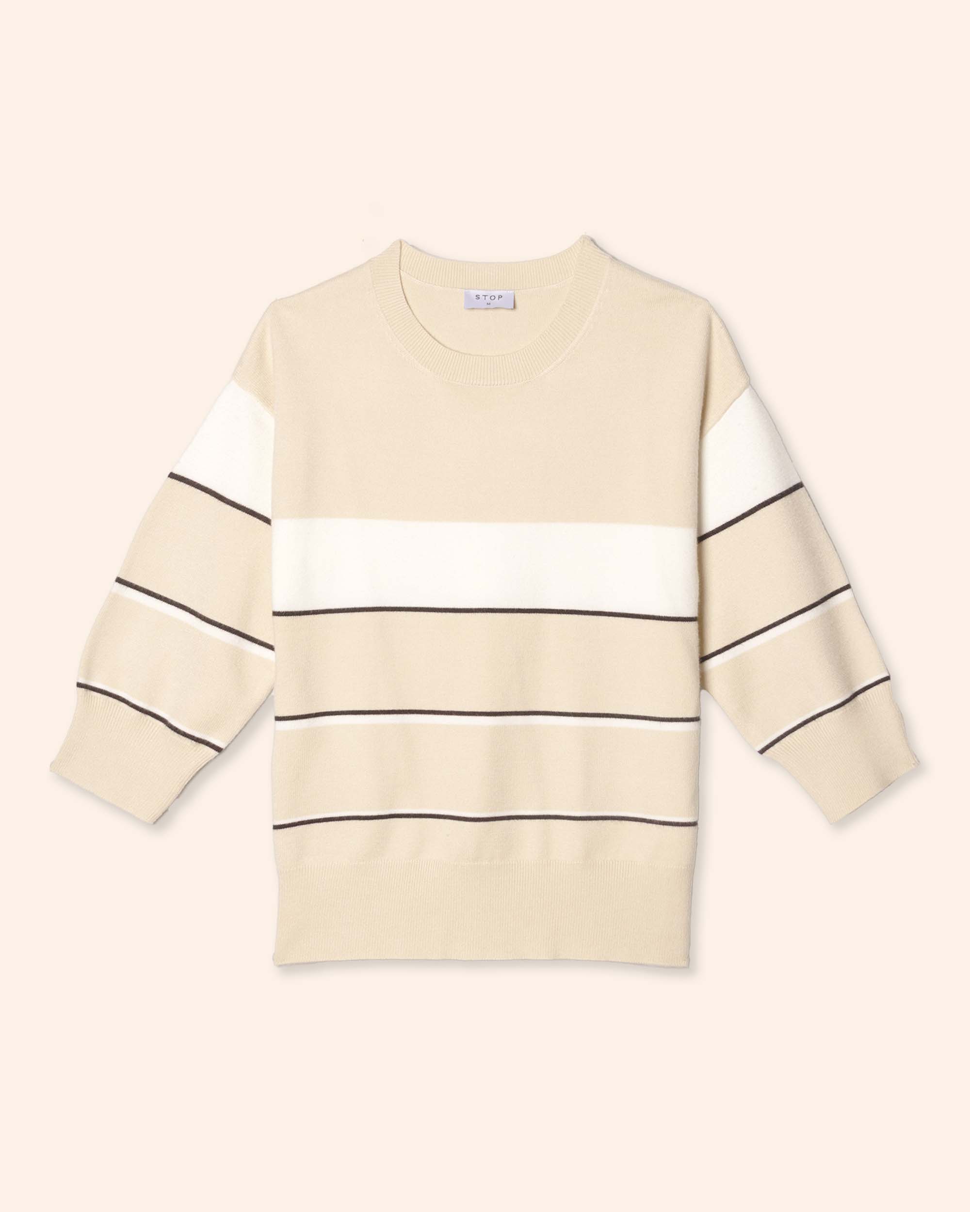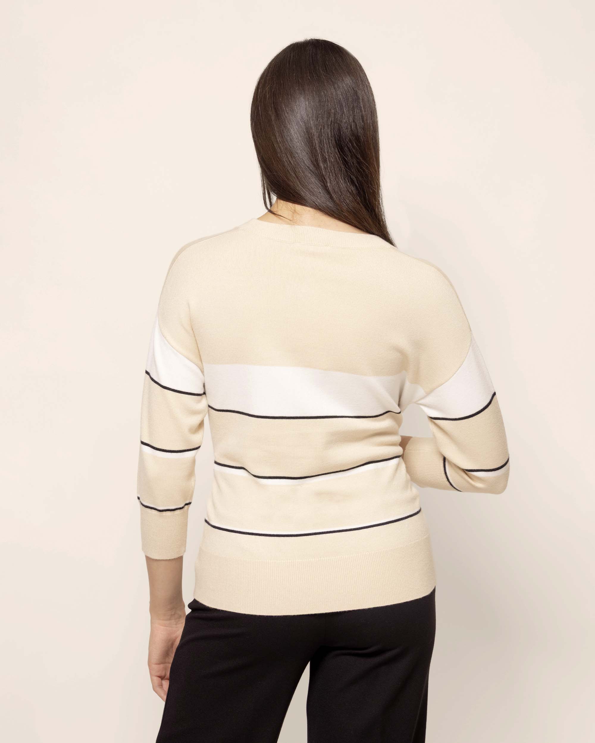 Blusa de punto rayas, manga 3/4, con cuello redondo