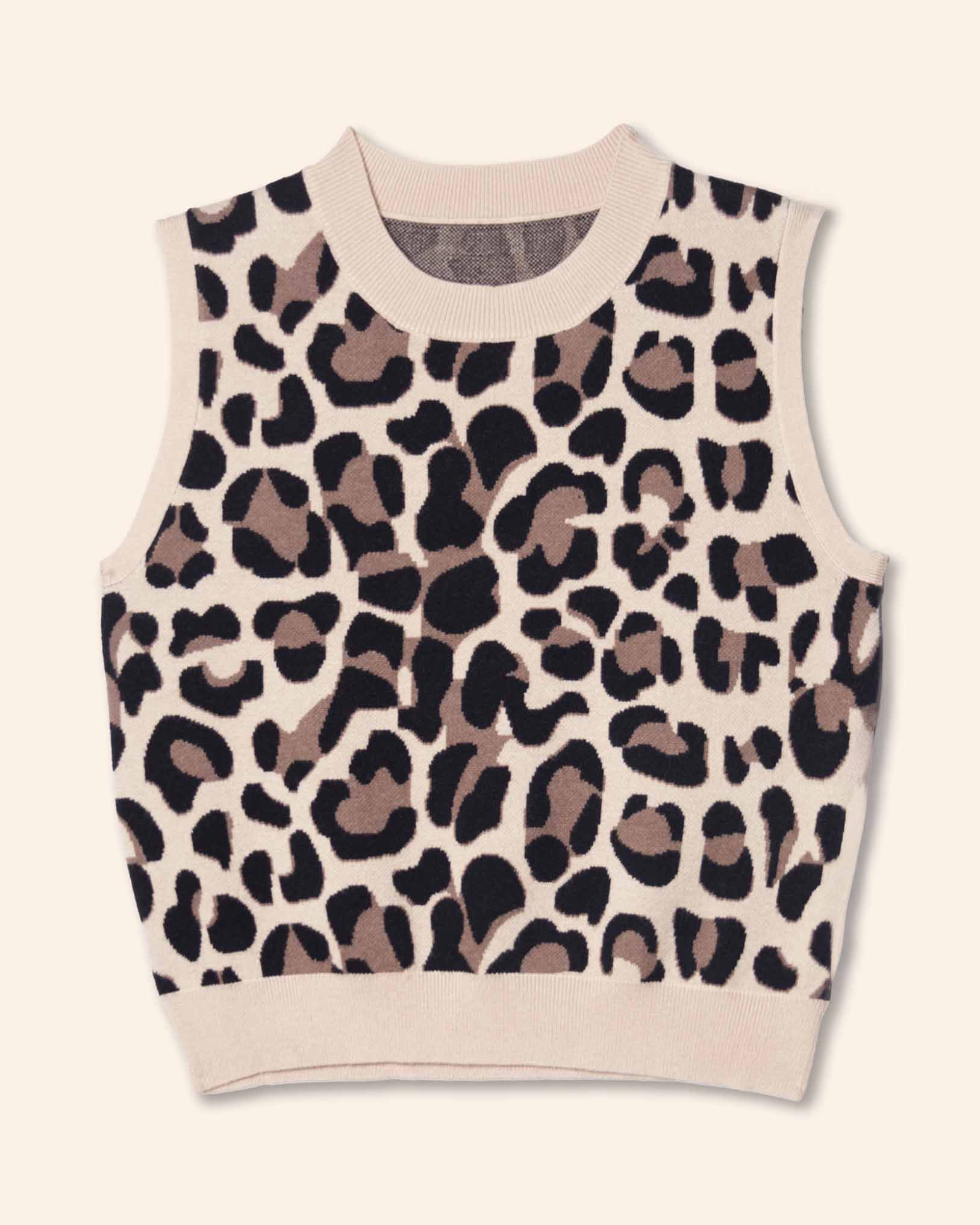 Blusa tejida, cuello redondo, sin mangas, con estampado de animal print, tejido suave