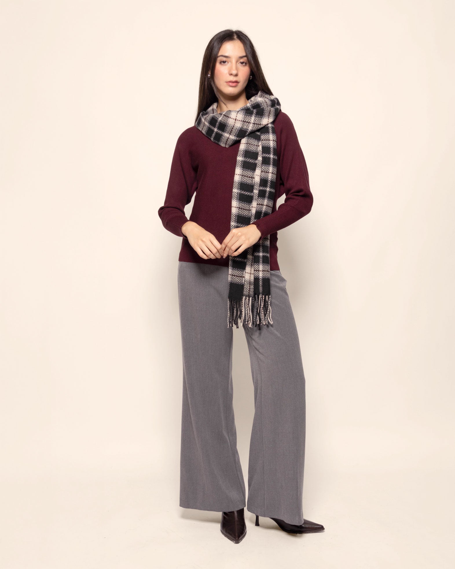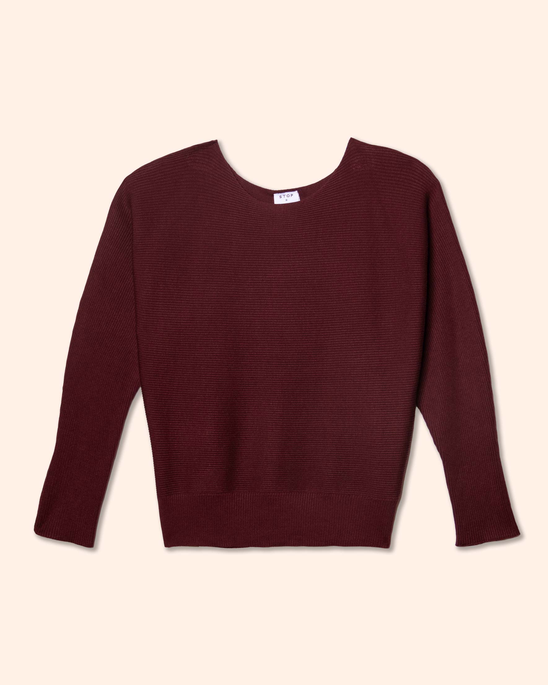 Blusa tejida, manga larga dolman, cuello ojal
