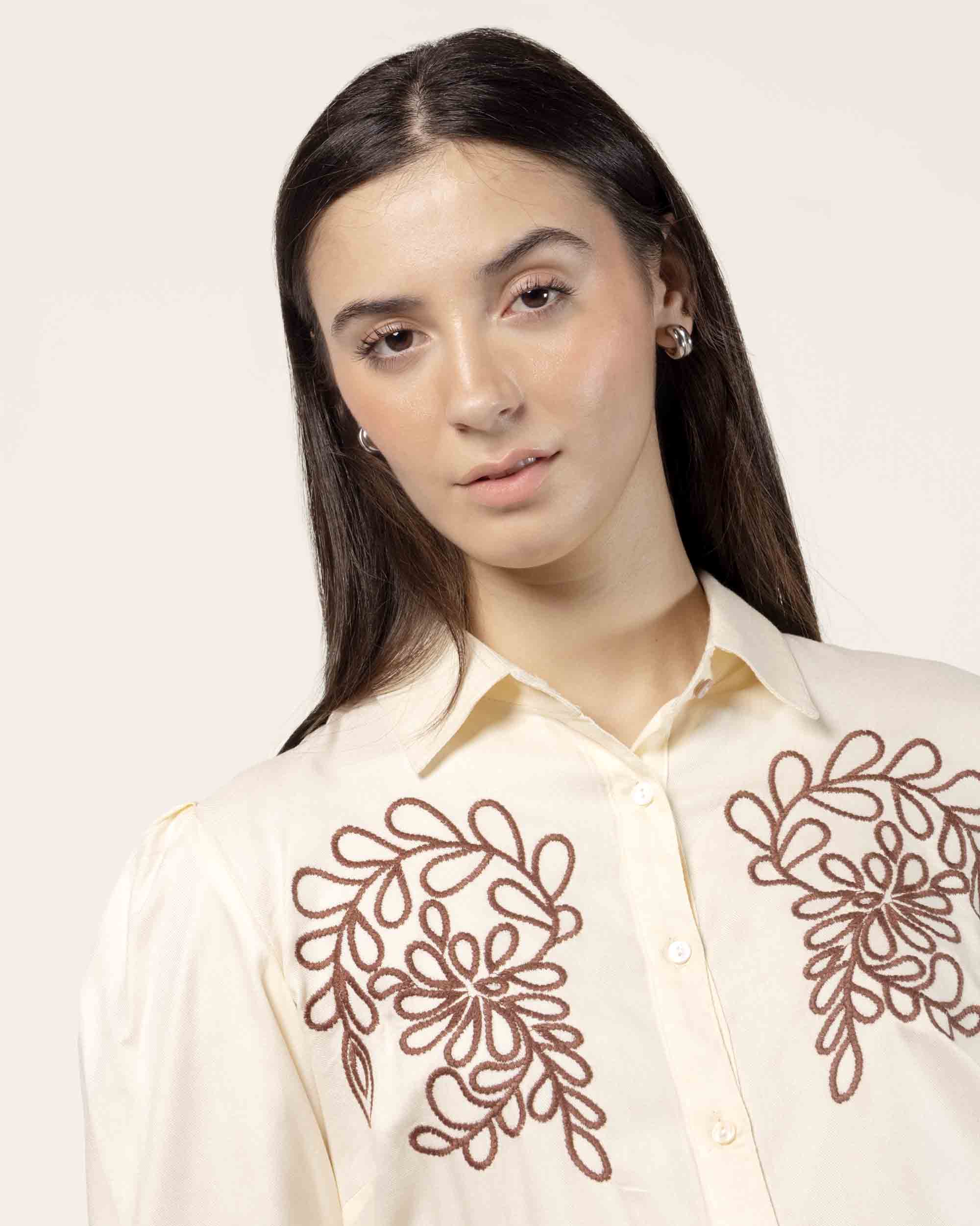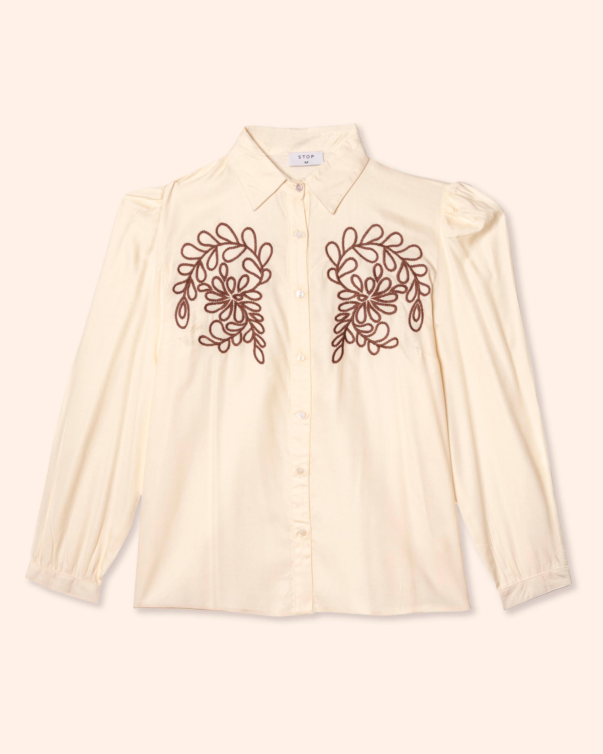 Descubre nuestra camisa con bordado en pecho, una prenda que combina feminidad y estilo en cada detalle. Con una elegante manga larga, esta camisa es perfecta para cualquier ocasión, desde una salida casual hasta un encuentro especial. Los botones al tono complementan su diseño, mientras que el encantador bordado bohemio añade un toque único.