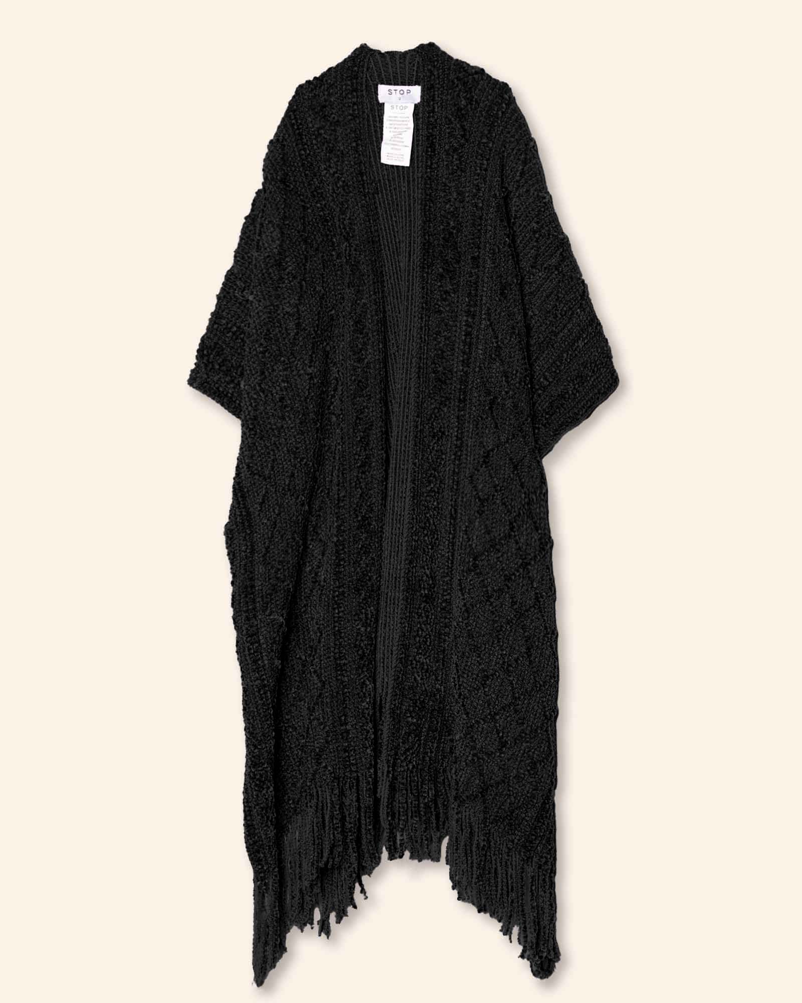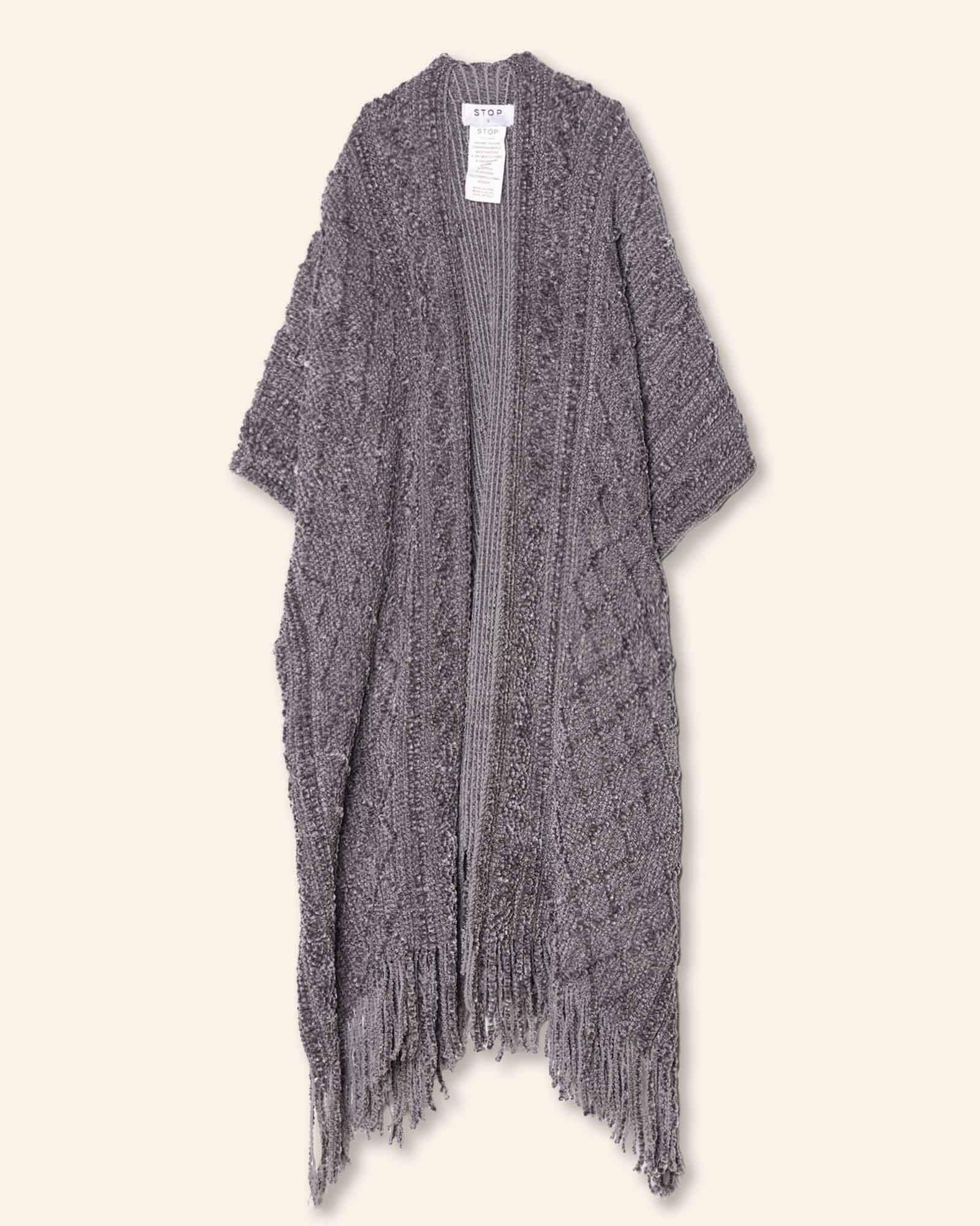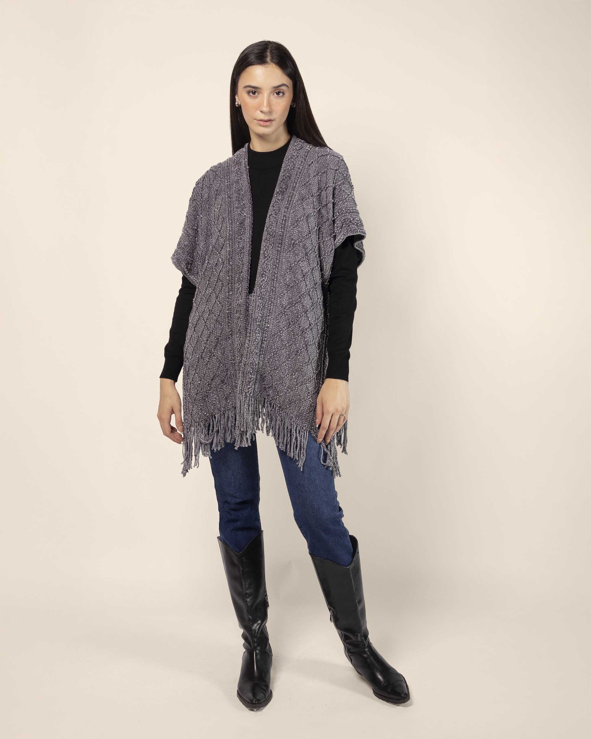 Capa tejida tipo chenille, con barbas
