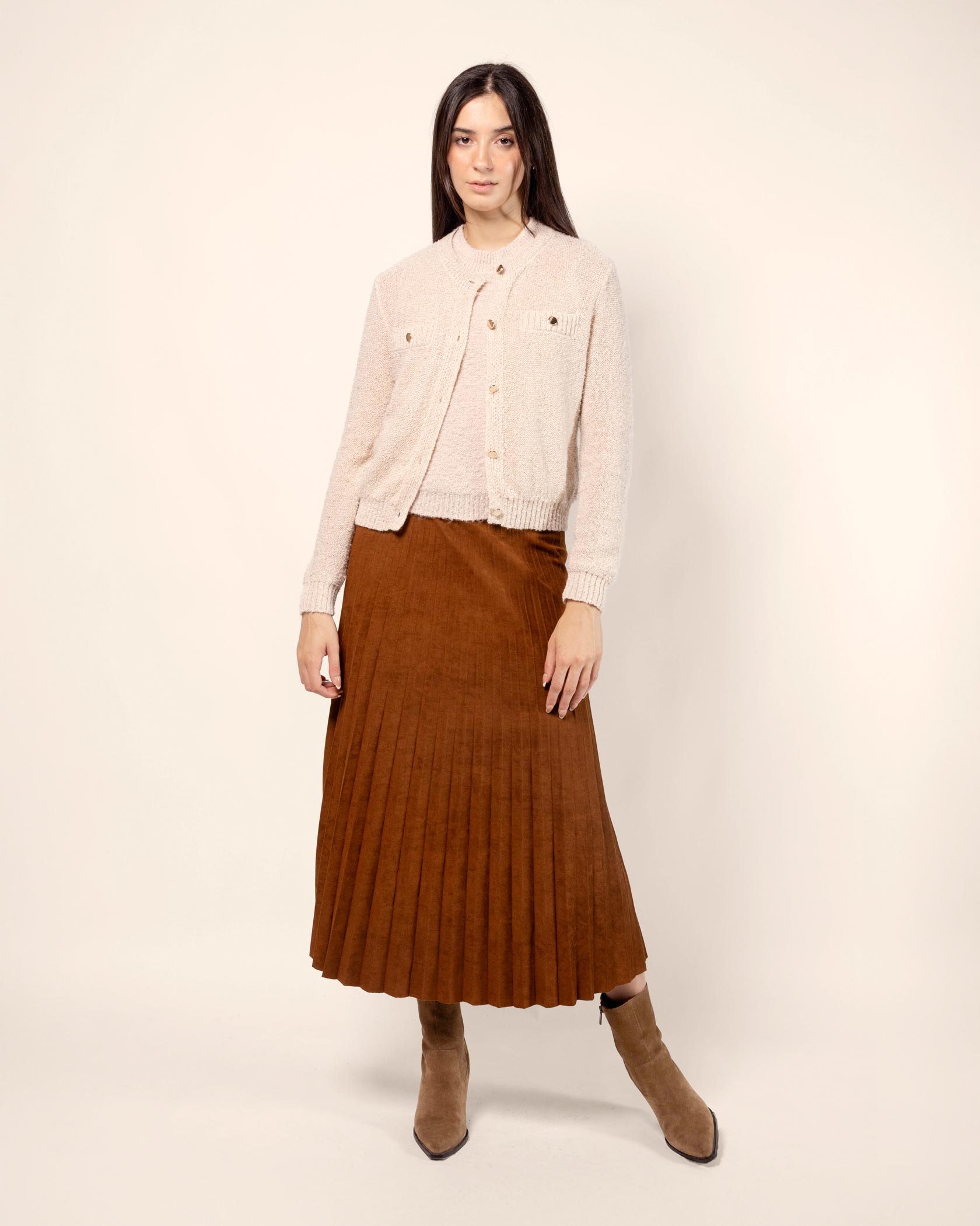 Cárdigan tejido textura botones dorados