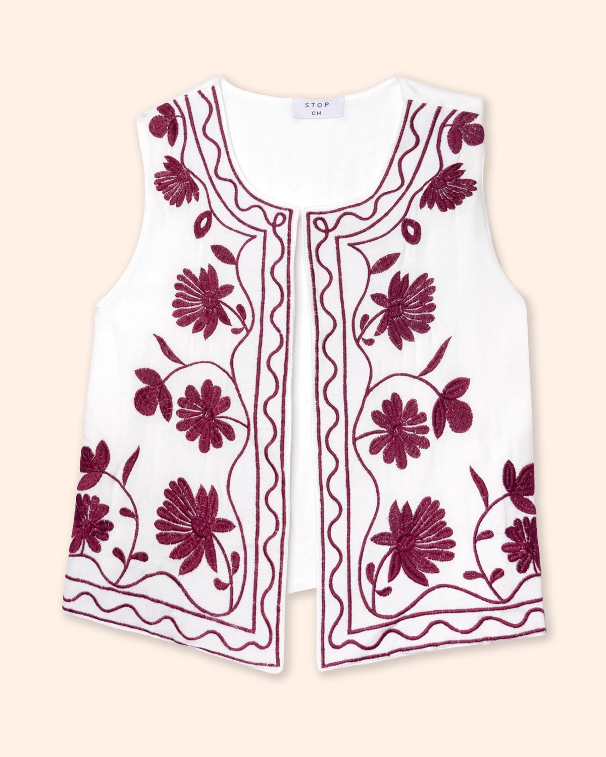 Chaleco efecto lino con bordado de flores al frente