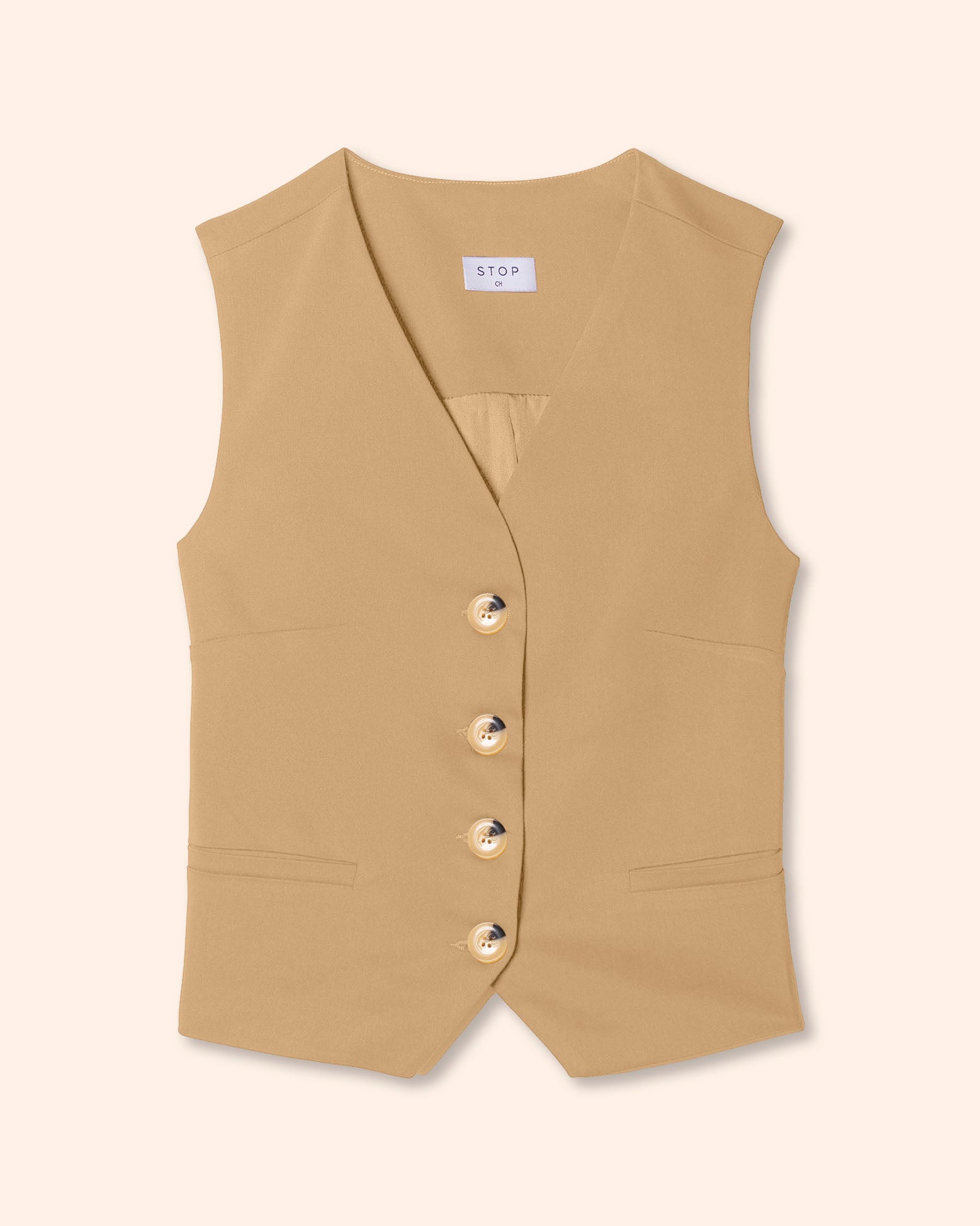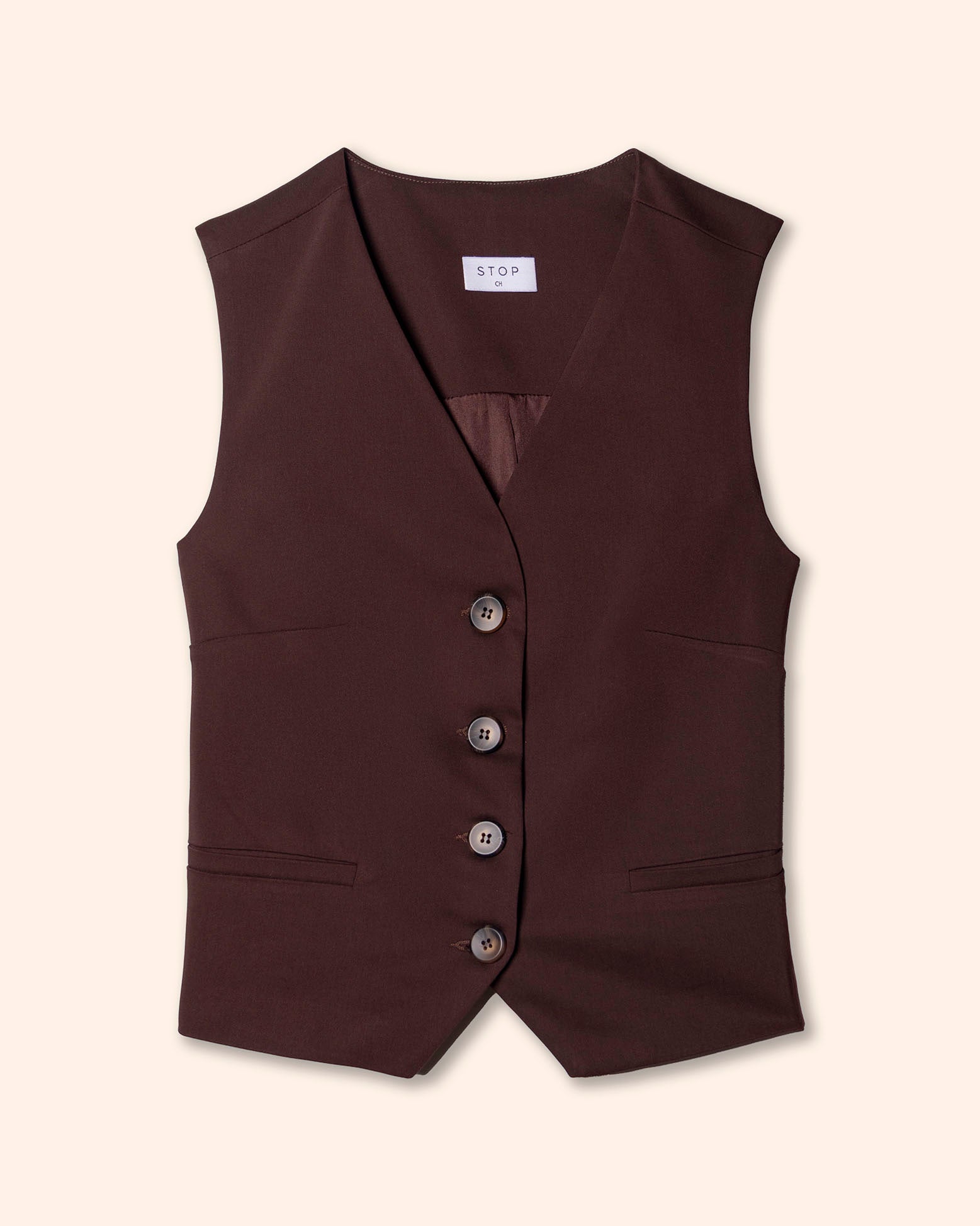 Chaleco recto cuello en V, con tela gruesa, forrado con botones y vivos