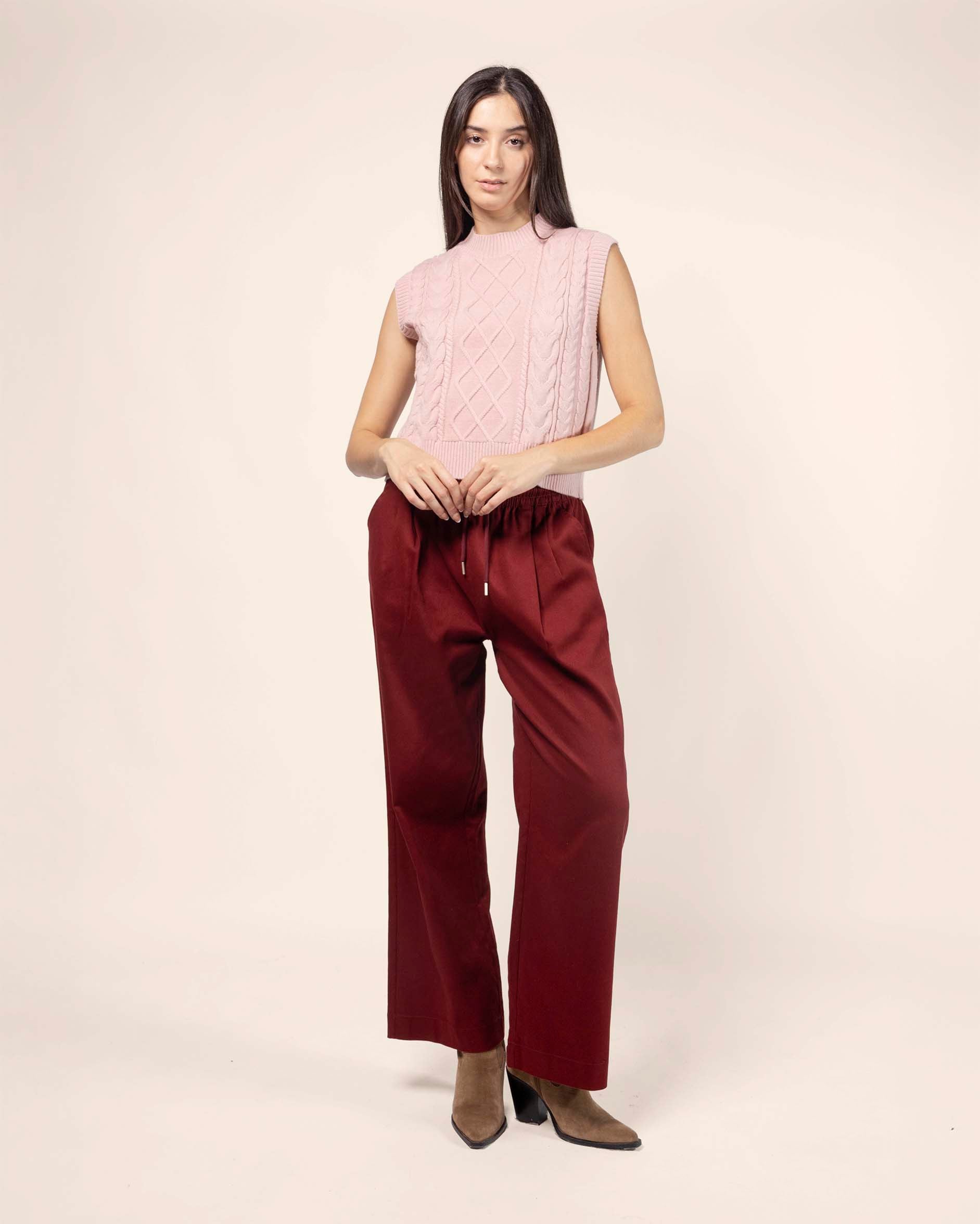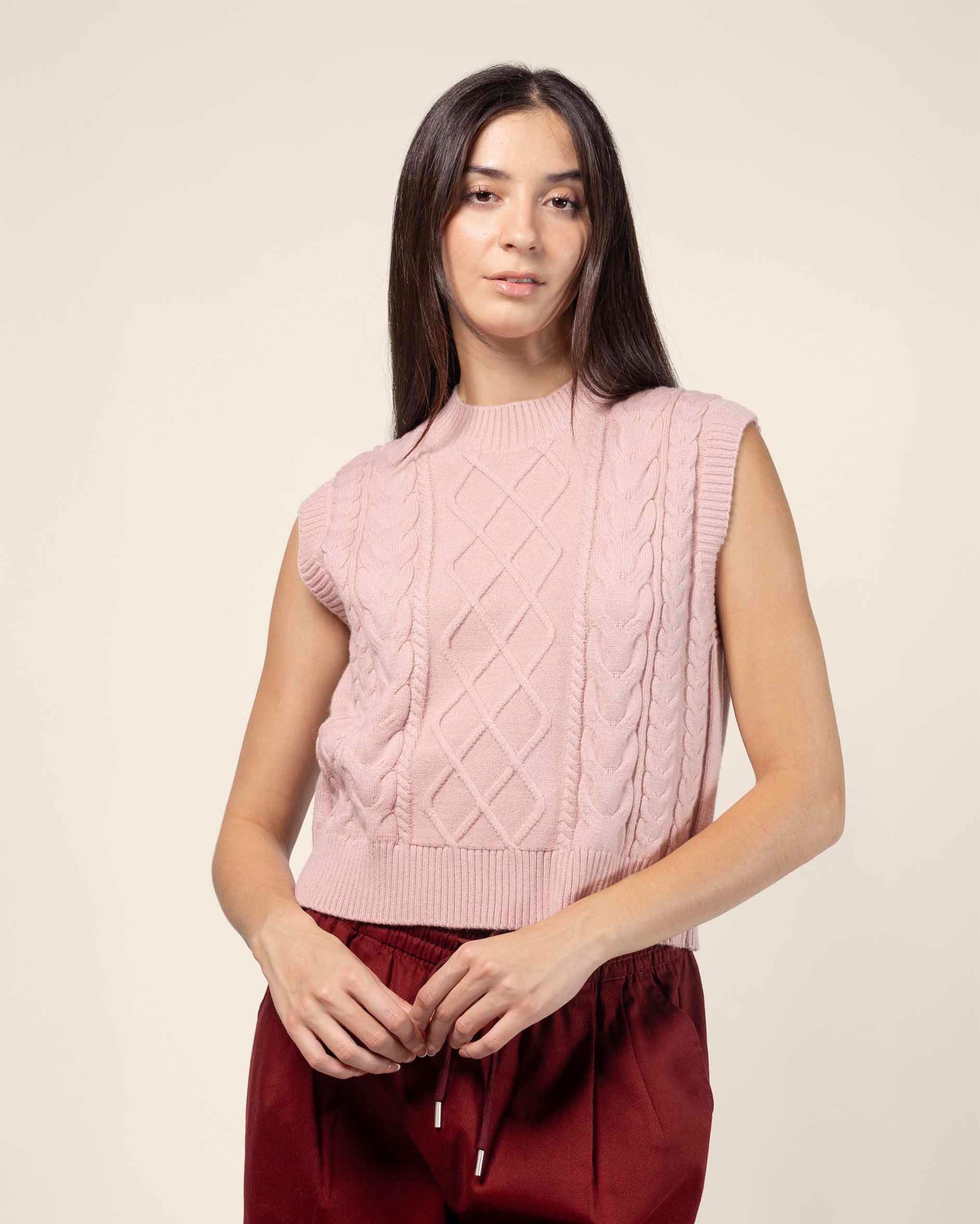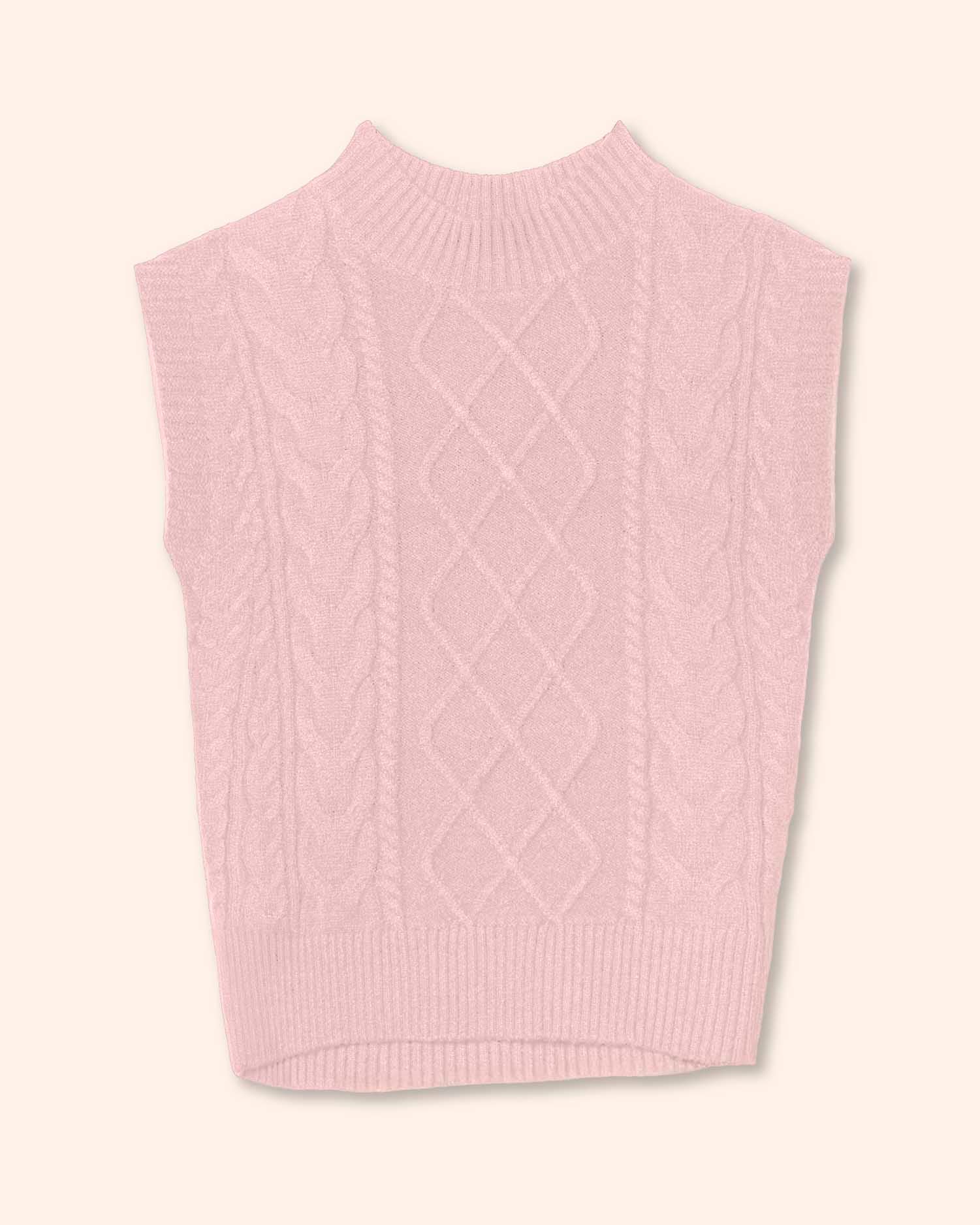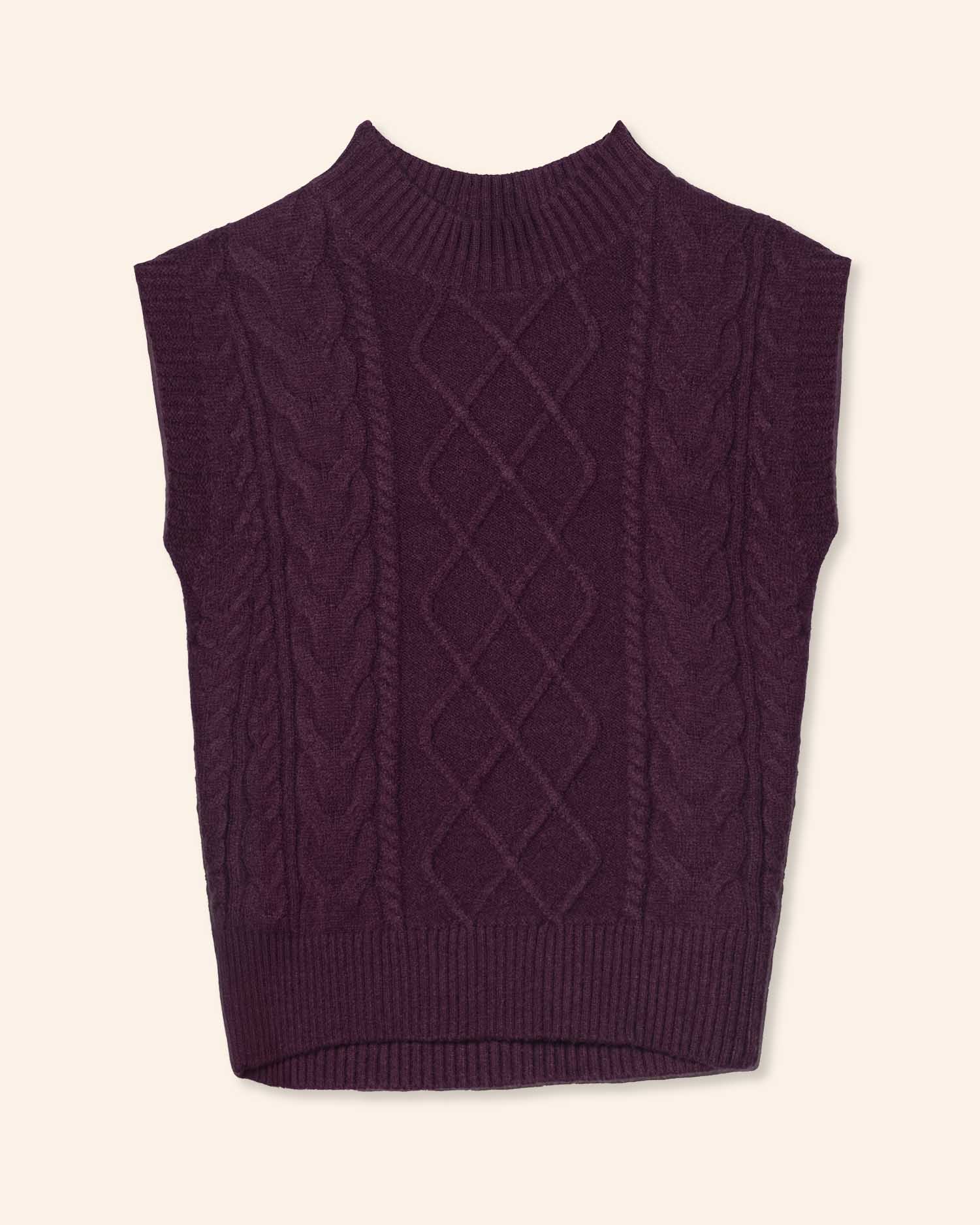 Chaleco tejido cuello mock, con trenzas y rombos, tejido suave