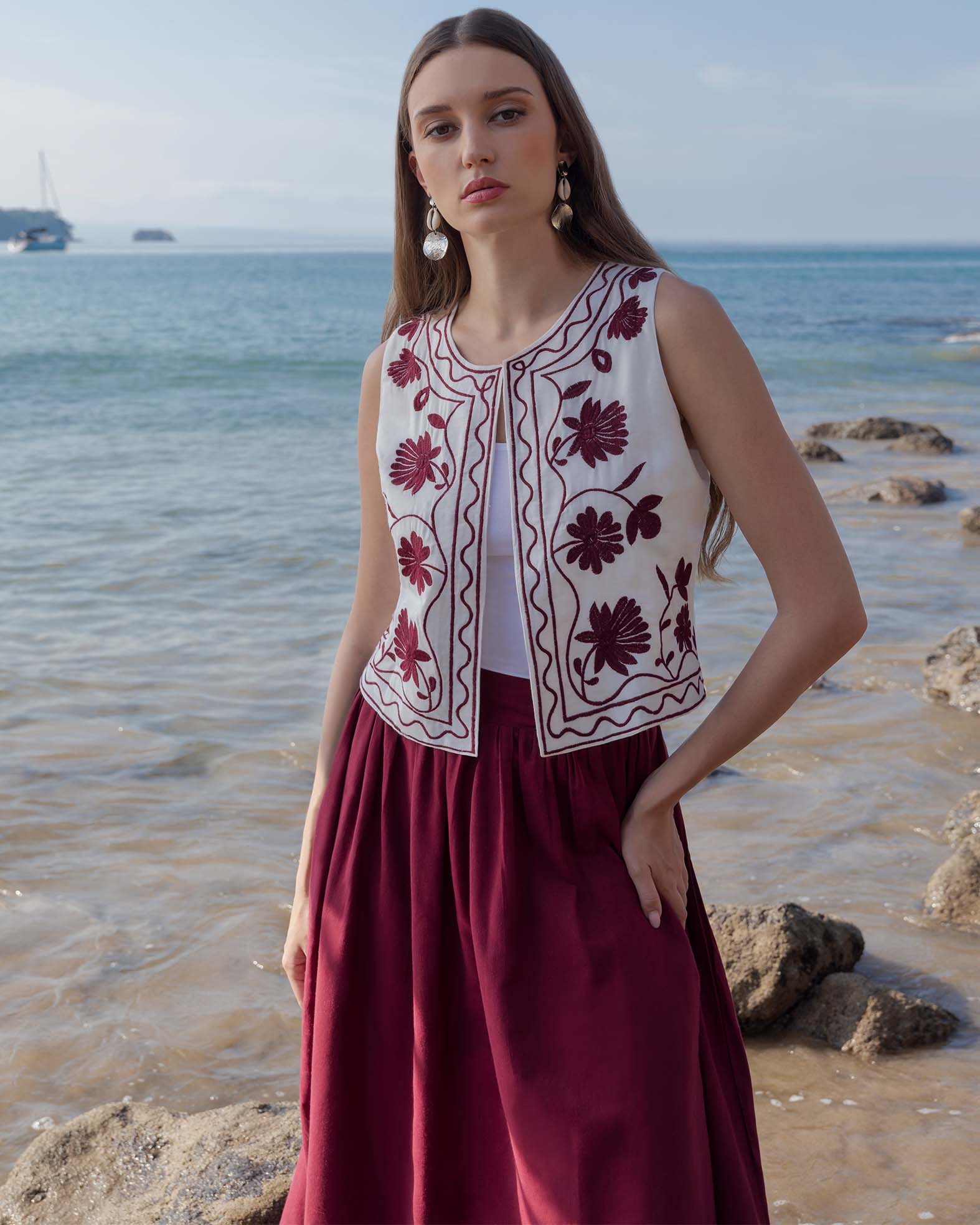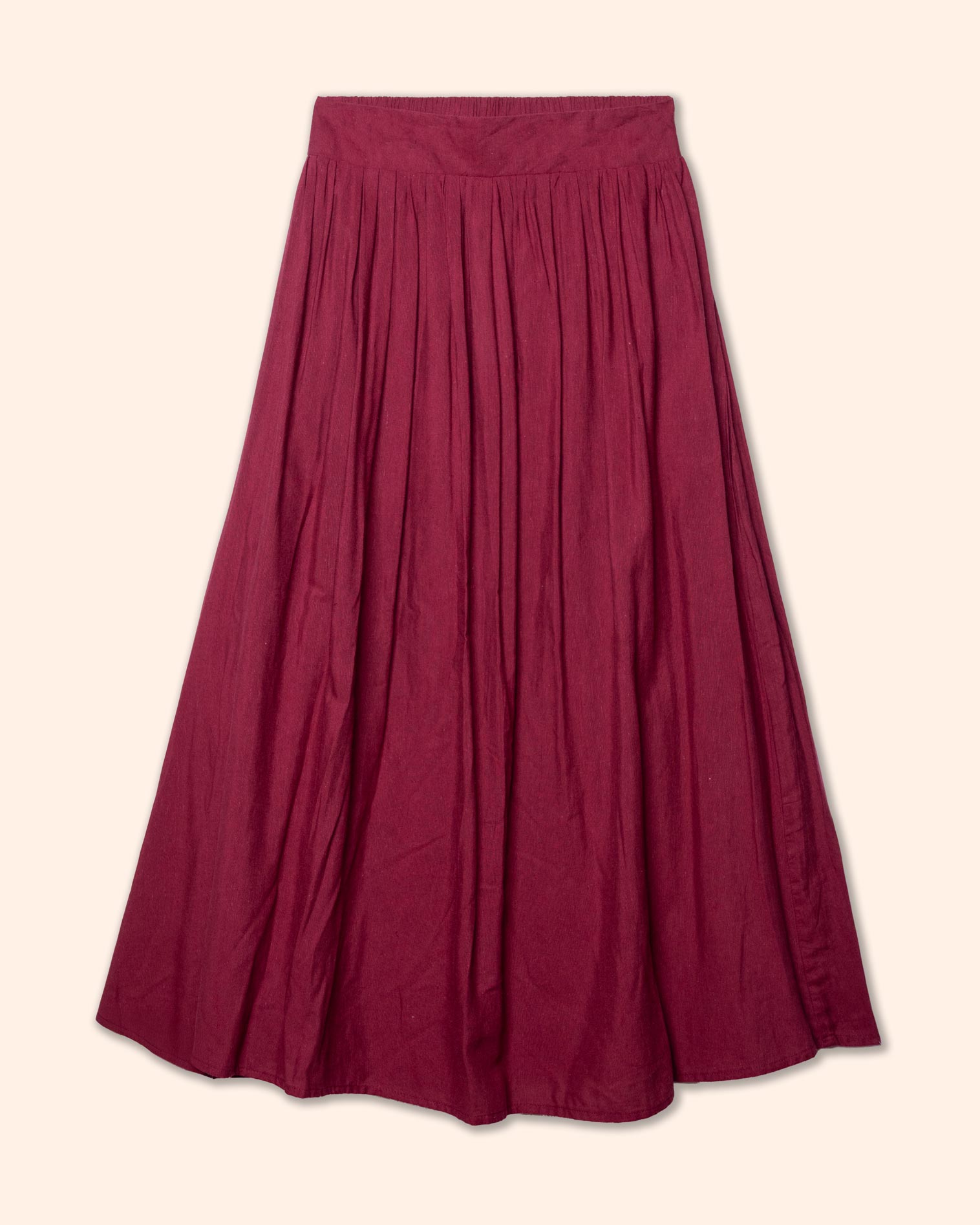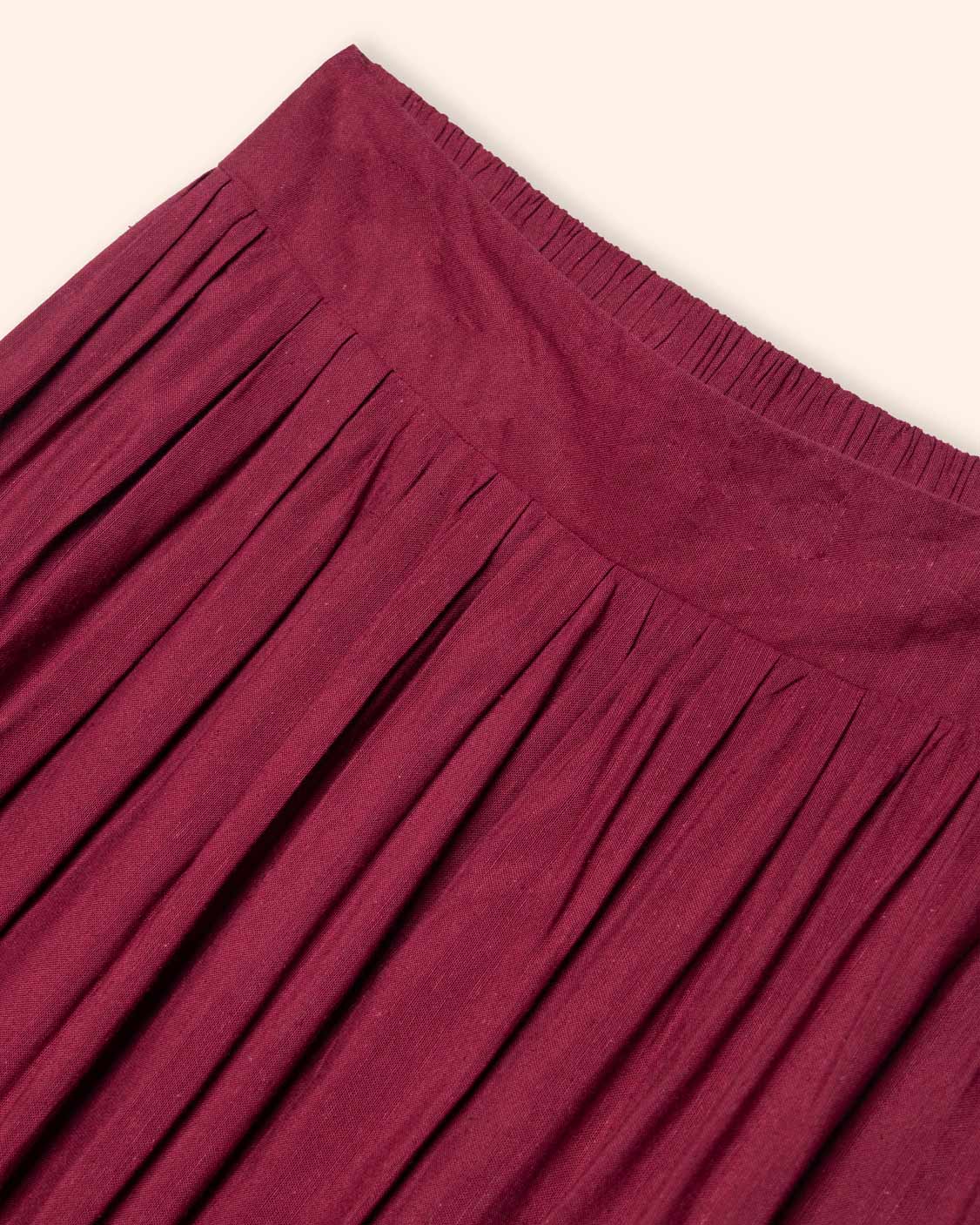 Falda larga, con pretina ancha, con bolsillos en costados, tela efecto lino y elástico en espalda que aporta confort