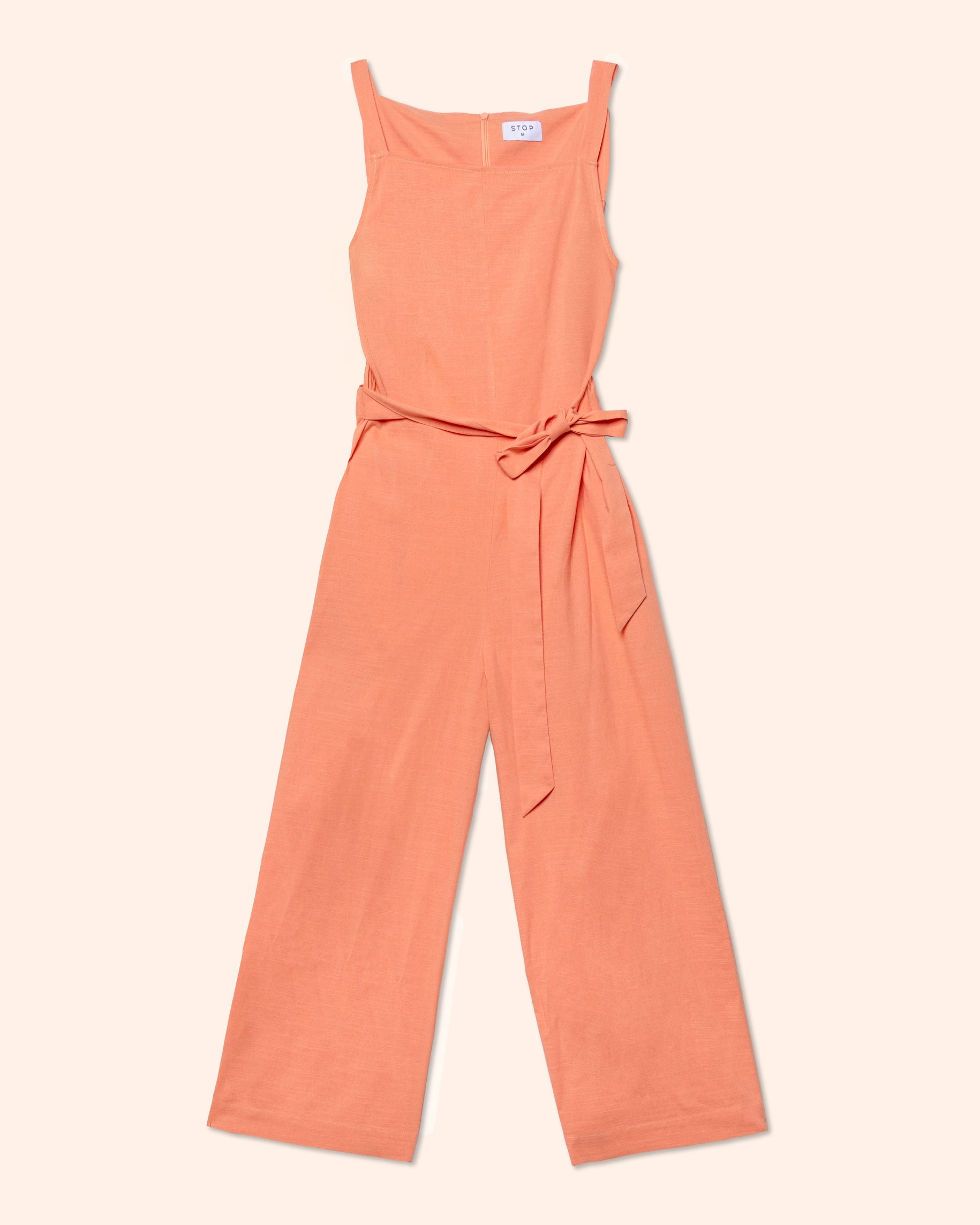 Jumpsuit tirante ancho con cinturón de la misma tela, con lino