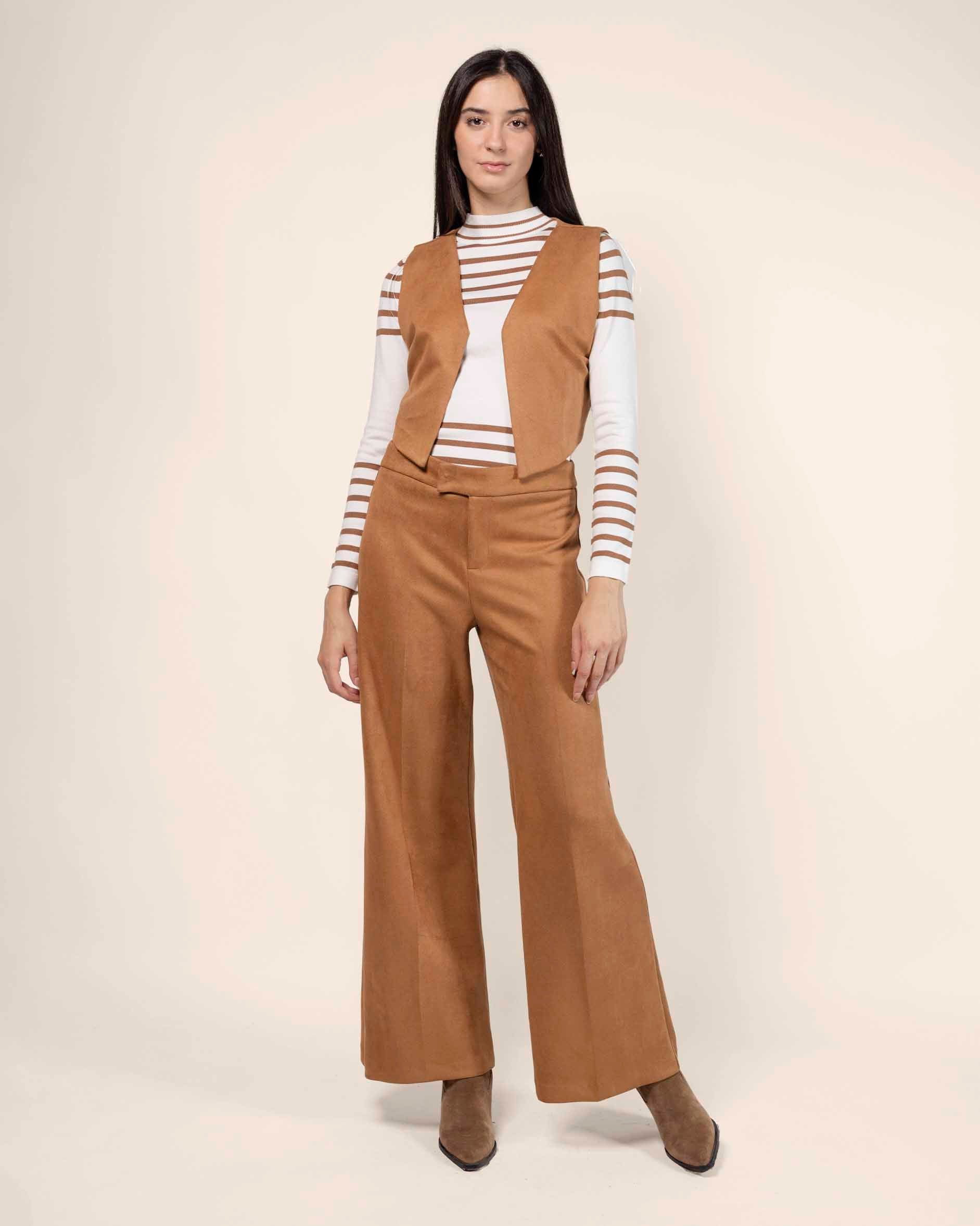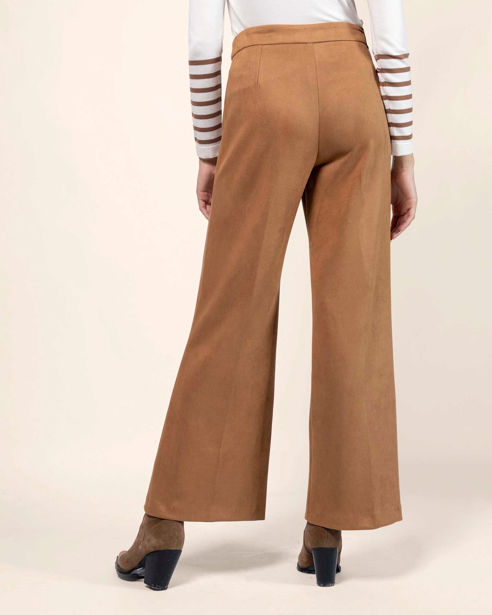 Pantalón pierna recta efecto ante con cruce en pretina