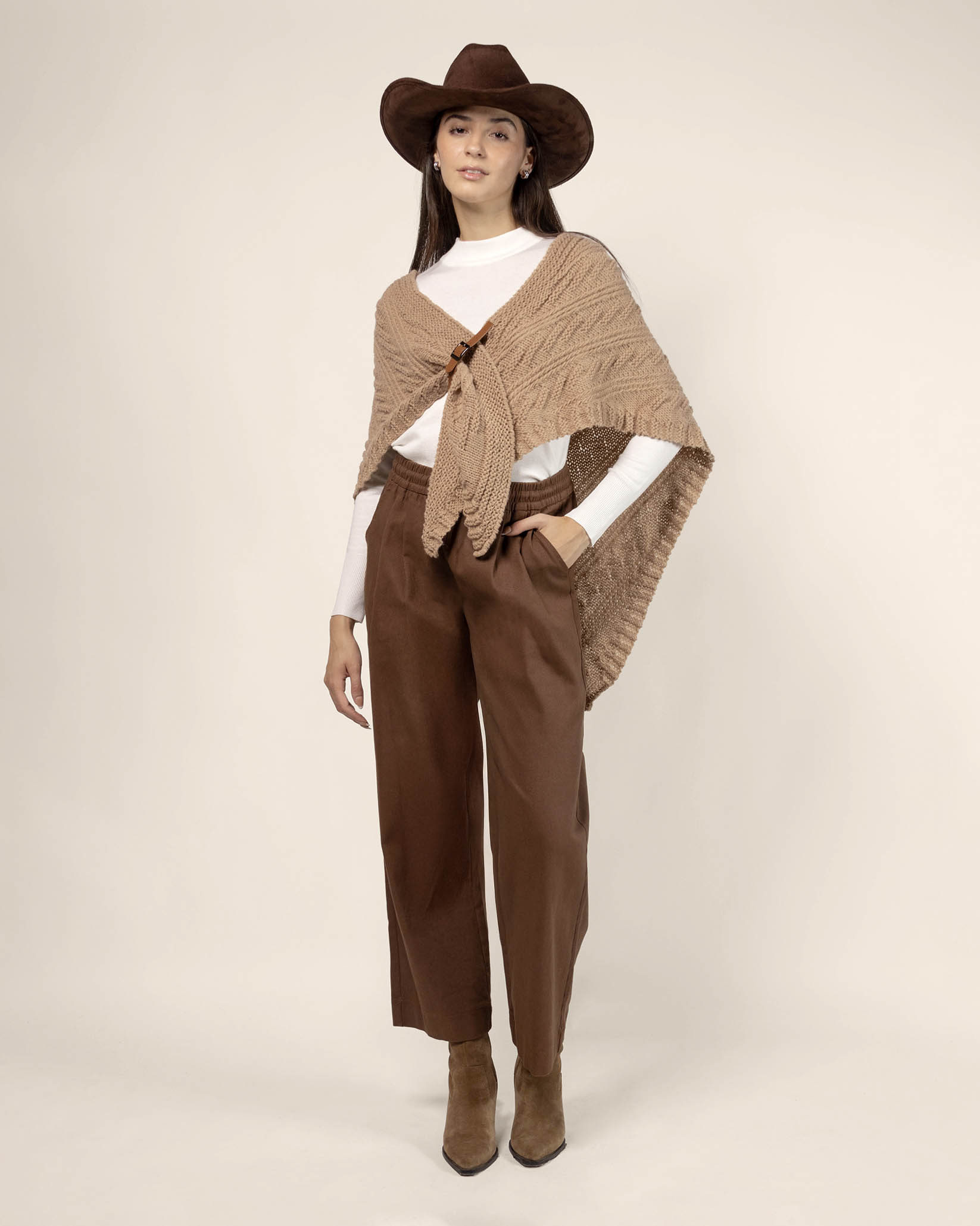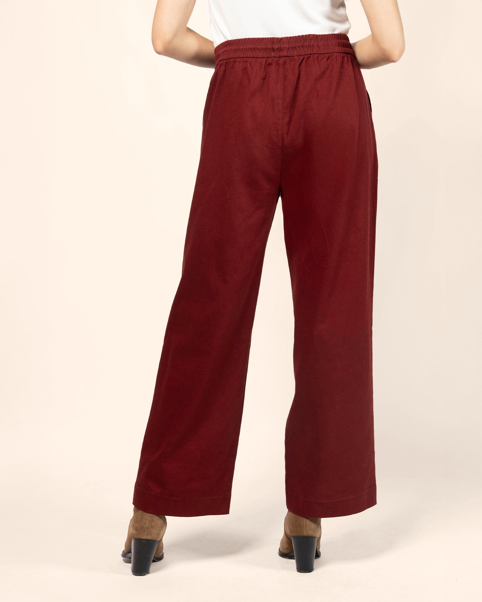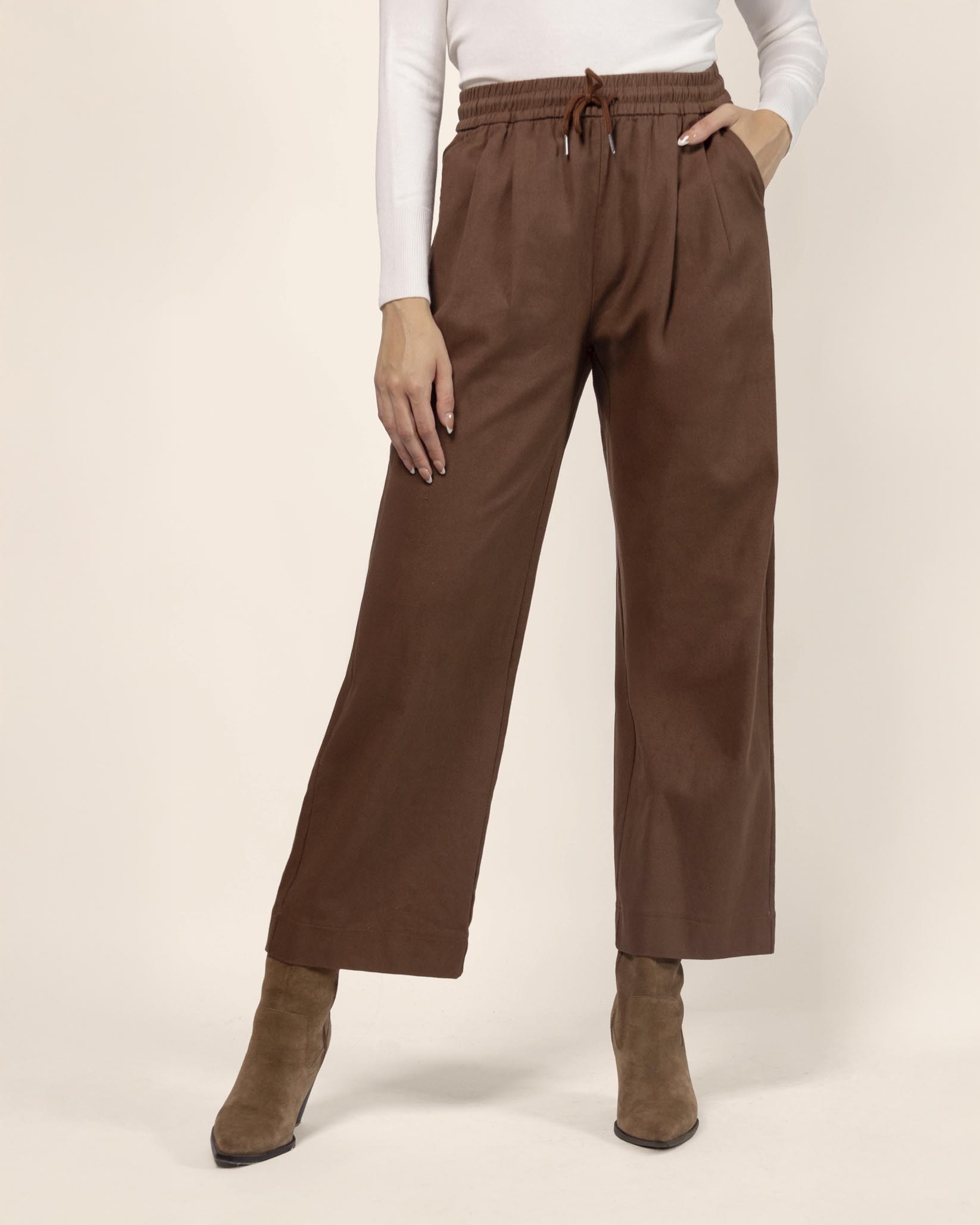 Pantalón pierna amplia de gabardina, con bolsillos, bastilla ancha, elástico y jareta en cintura que aportan confort