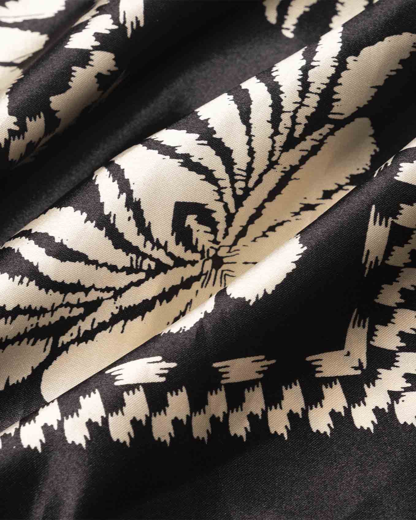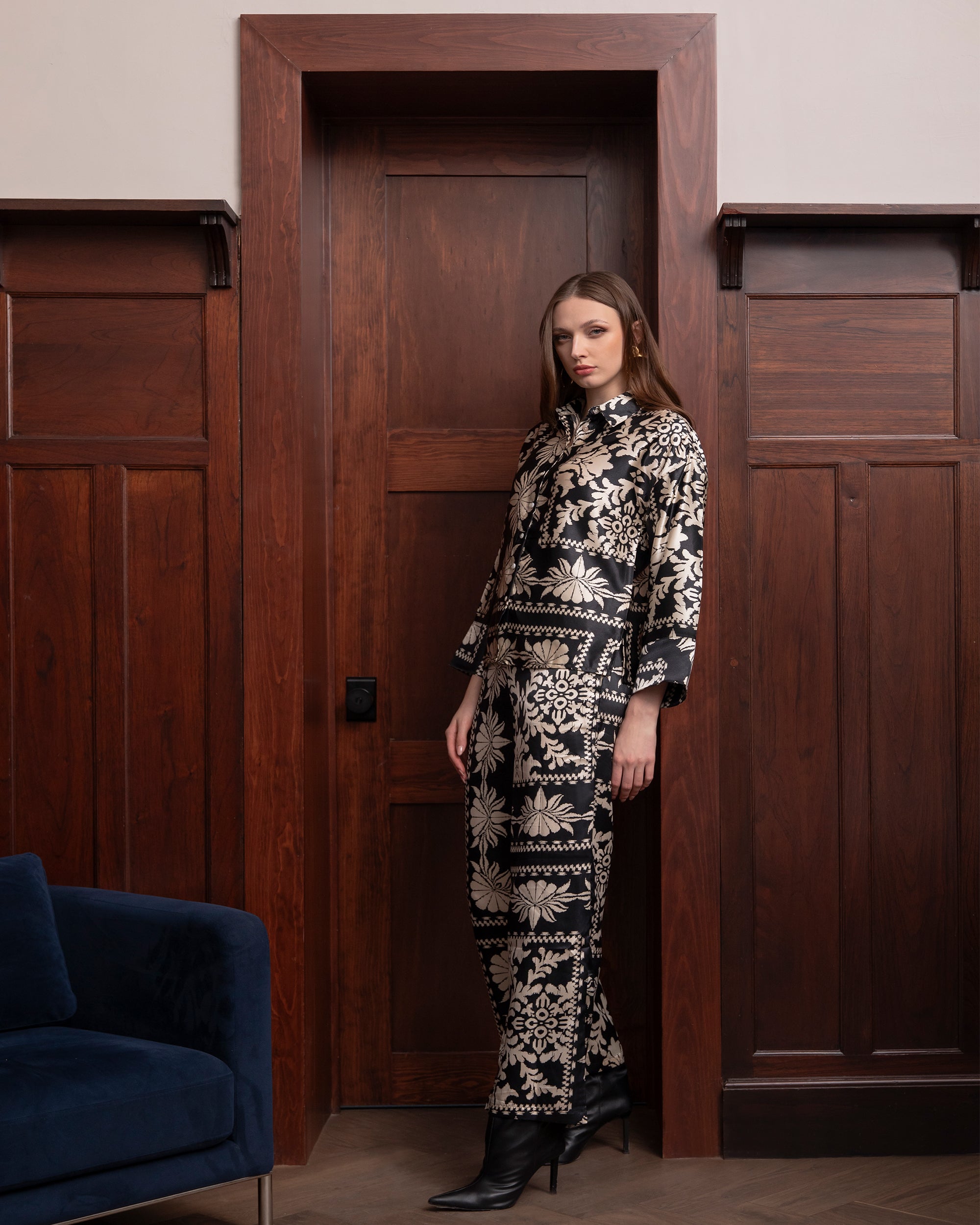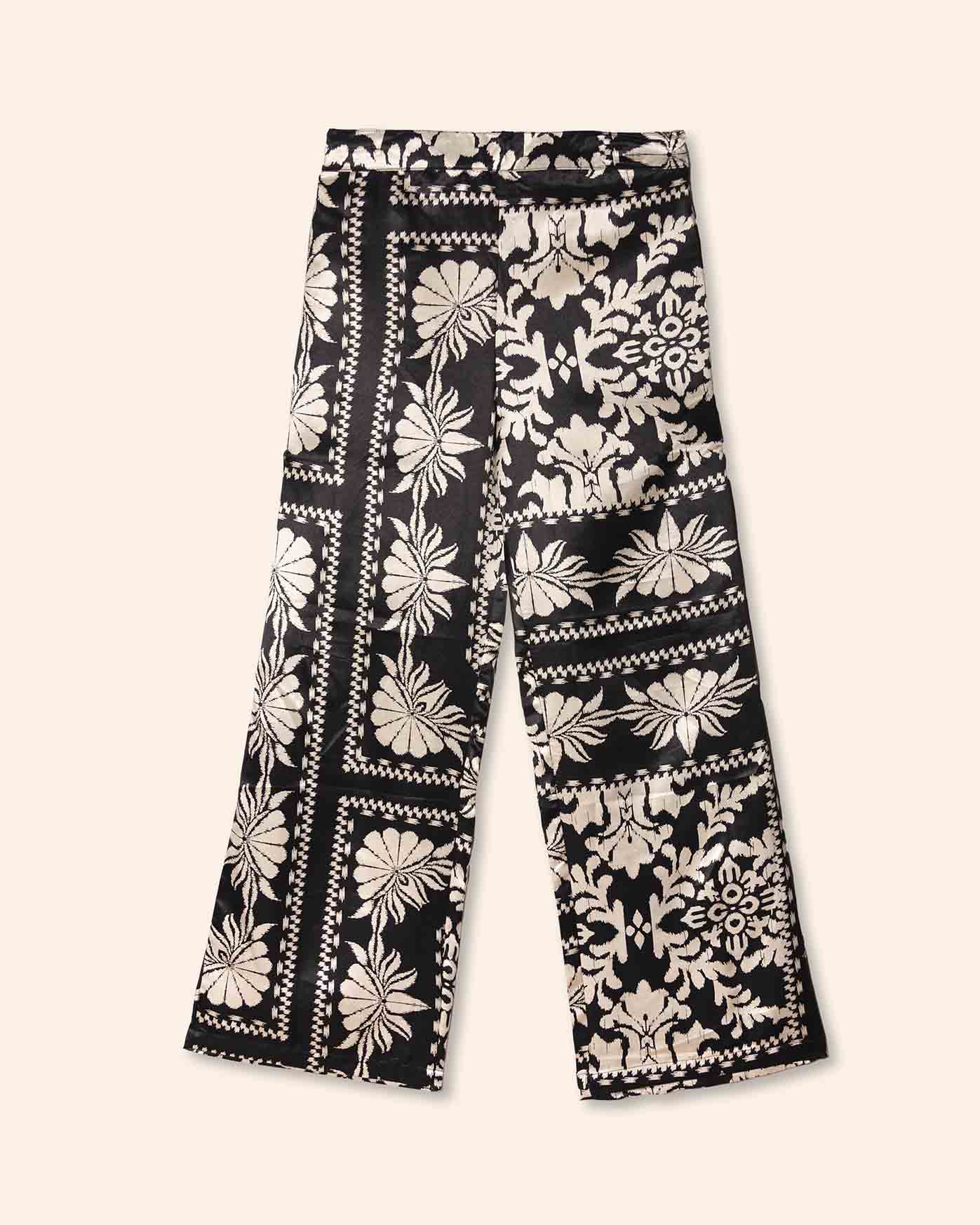 Pantalón pierna amplia, estampado, satinado, con bolsillos y elástico en espalda que aporta confort