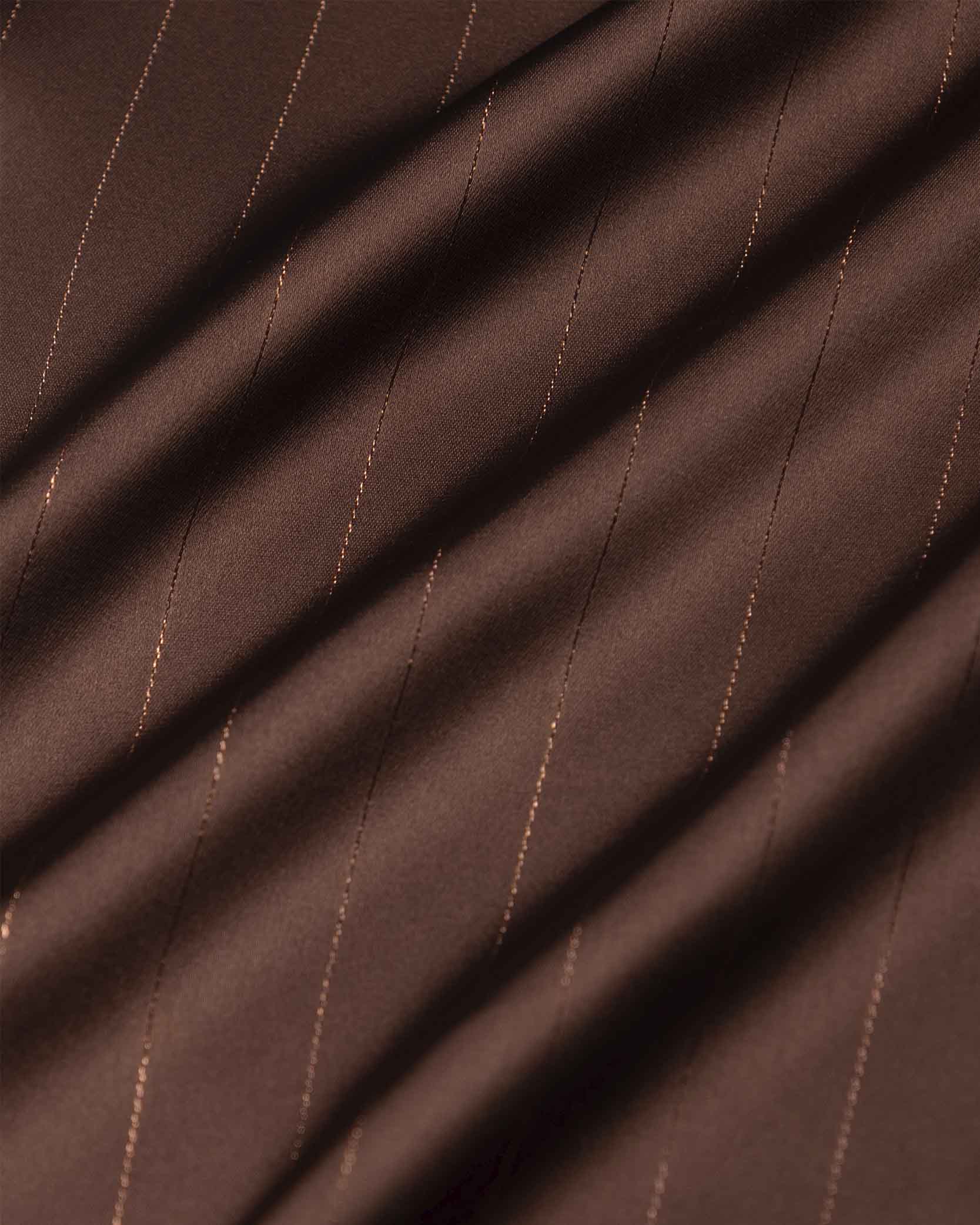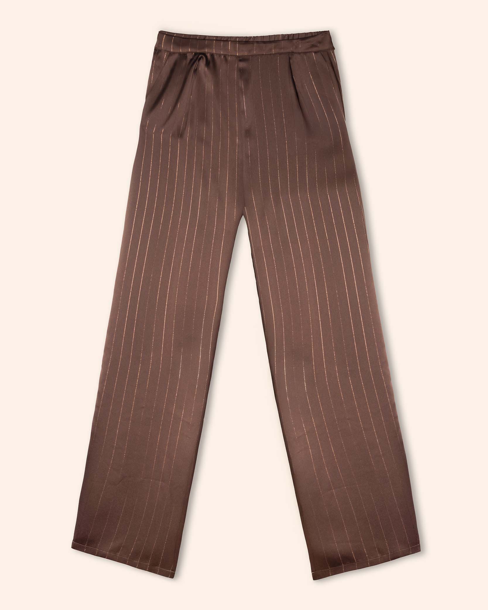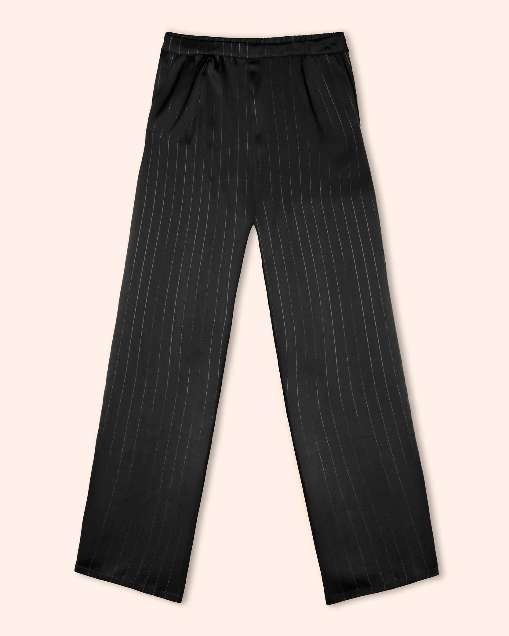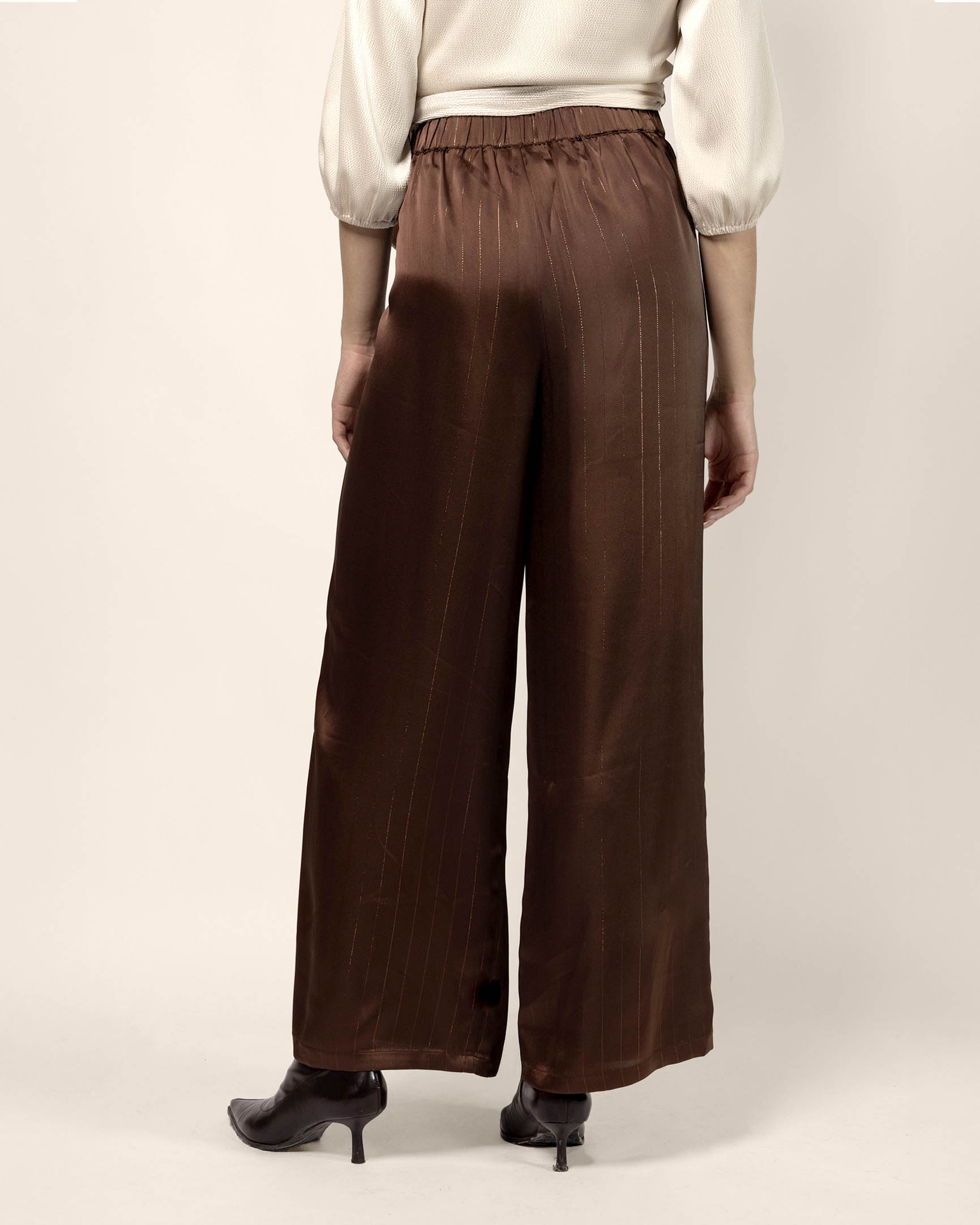 Pantalón satinado a rayas, pierna amplia, con pinzas, bolsillos y elástico en espalda que aporta confort