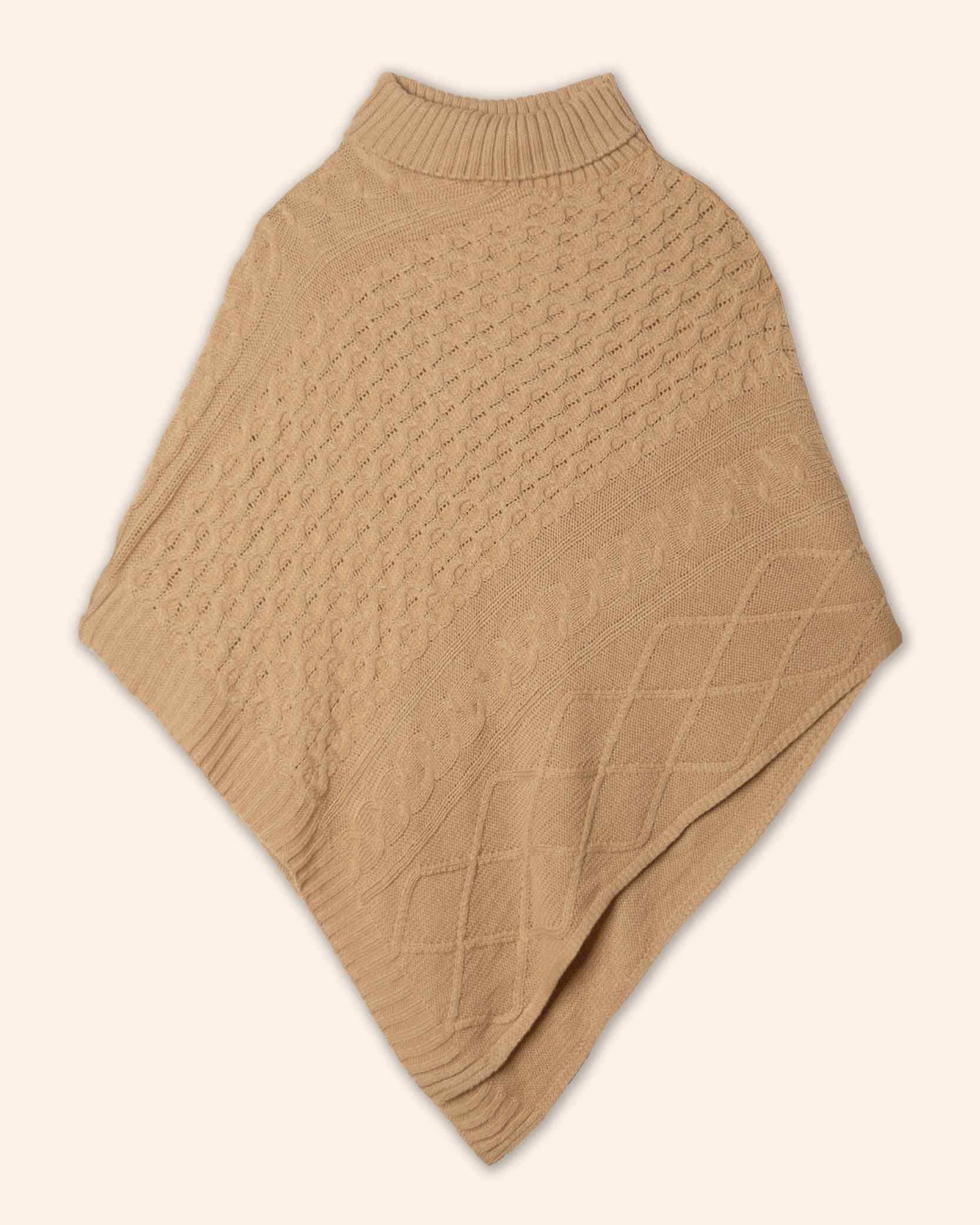 Poncho tejido cuello tortuga, con textura de trenzas