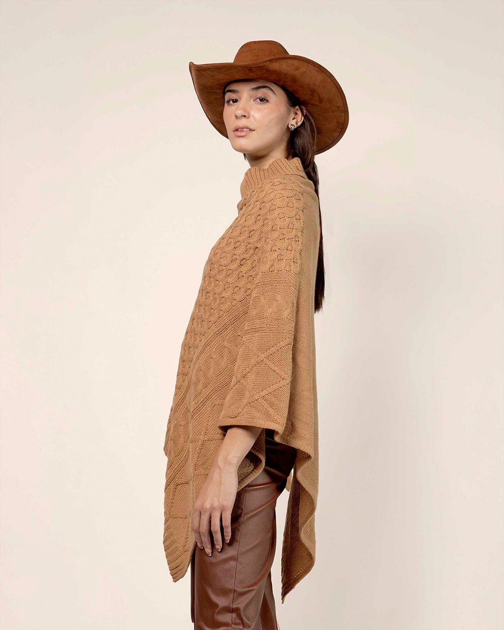 Poncho cuello tortuga trenzas