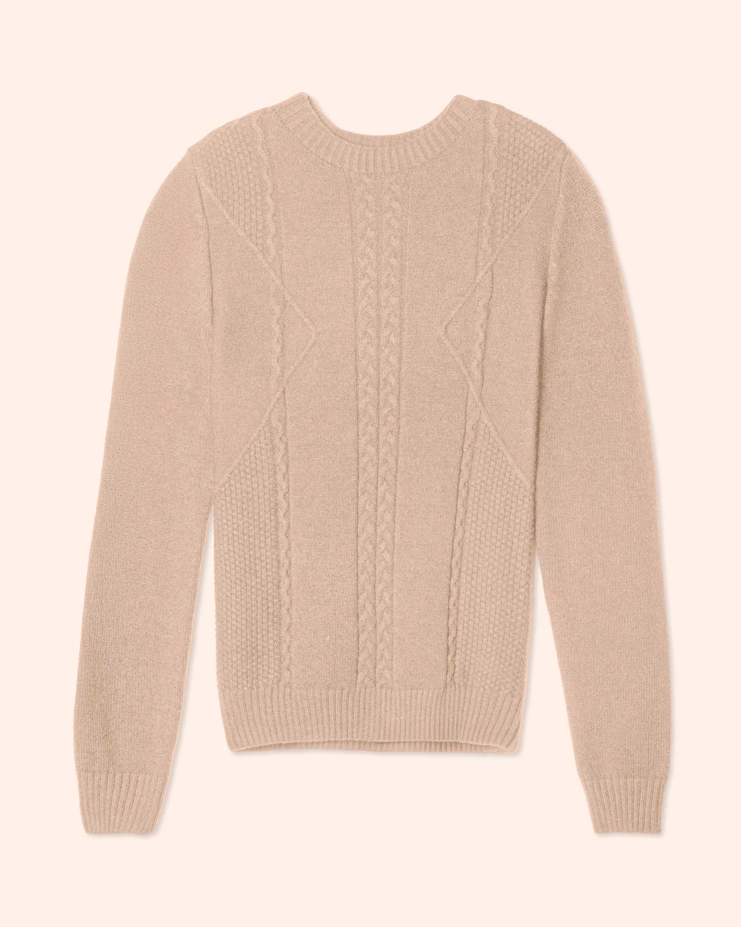 Suéter de punto, cuello redondo, con trenza delgada al centro