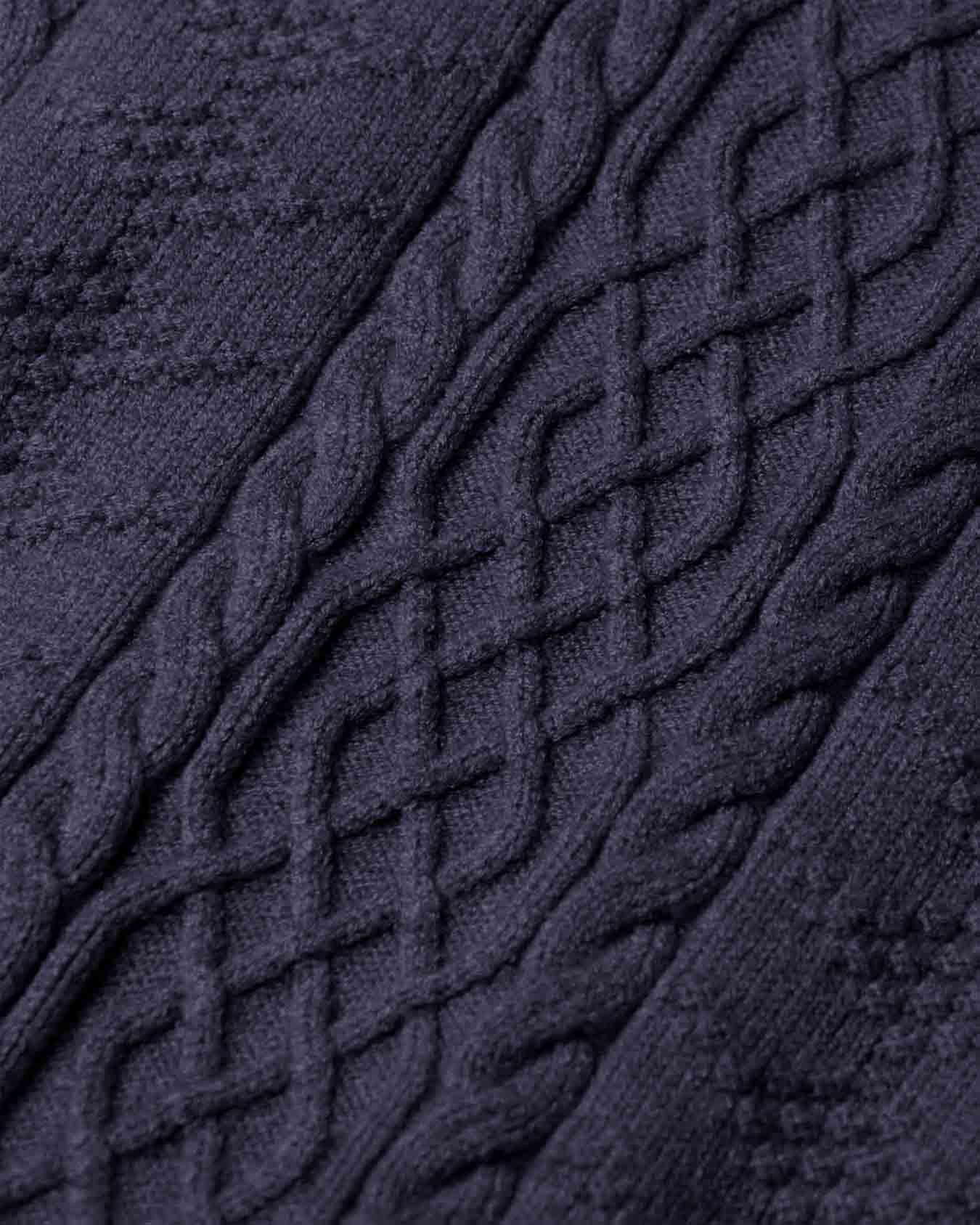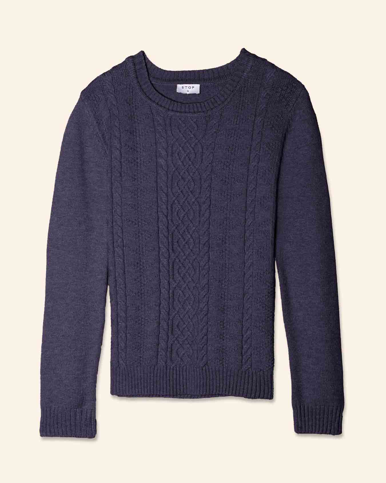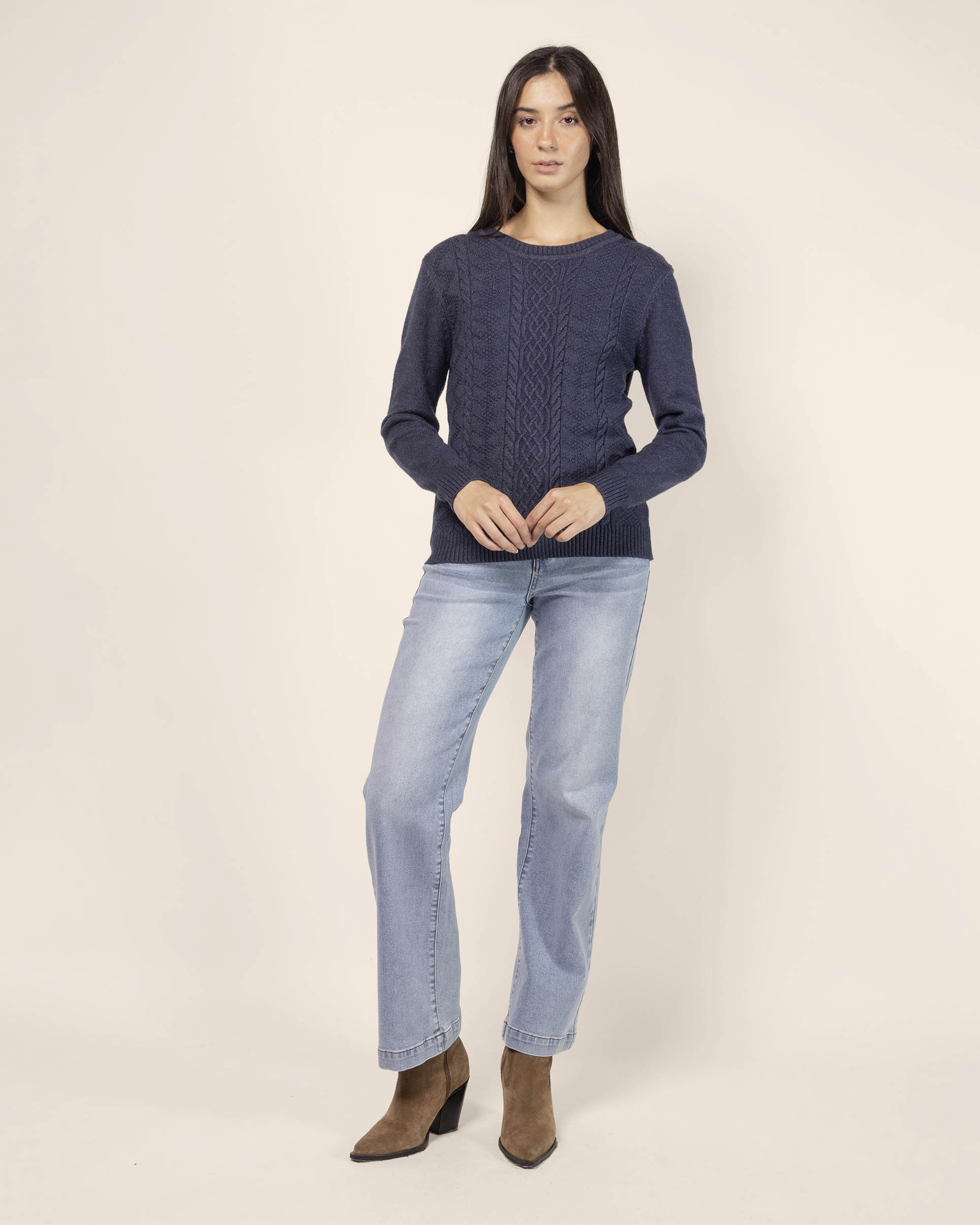 Suéter de punto, cuello redondo, con trenzas y rombos