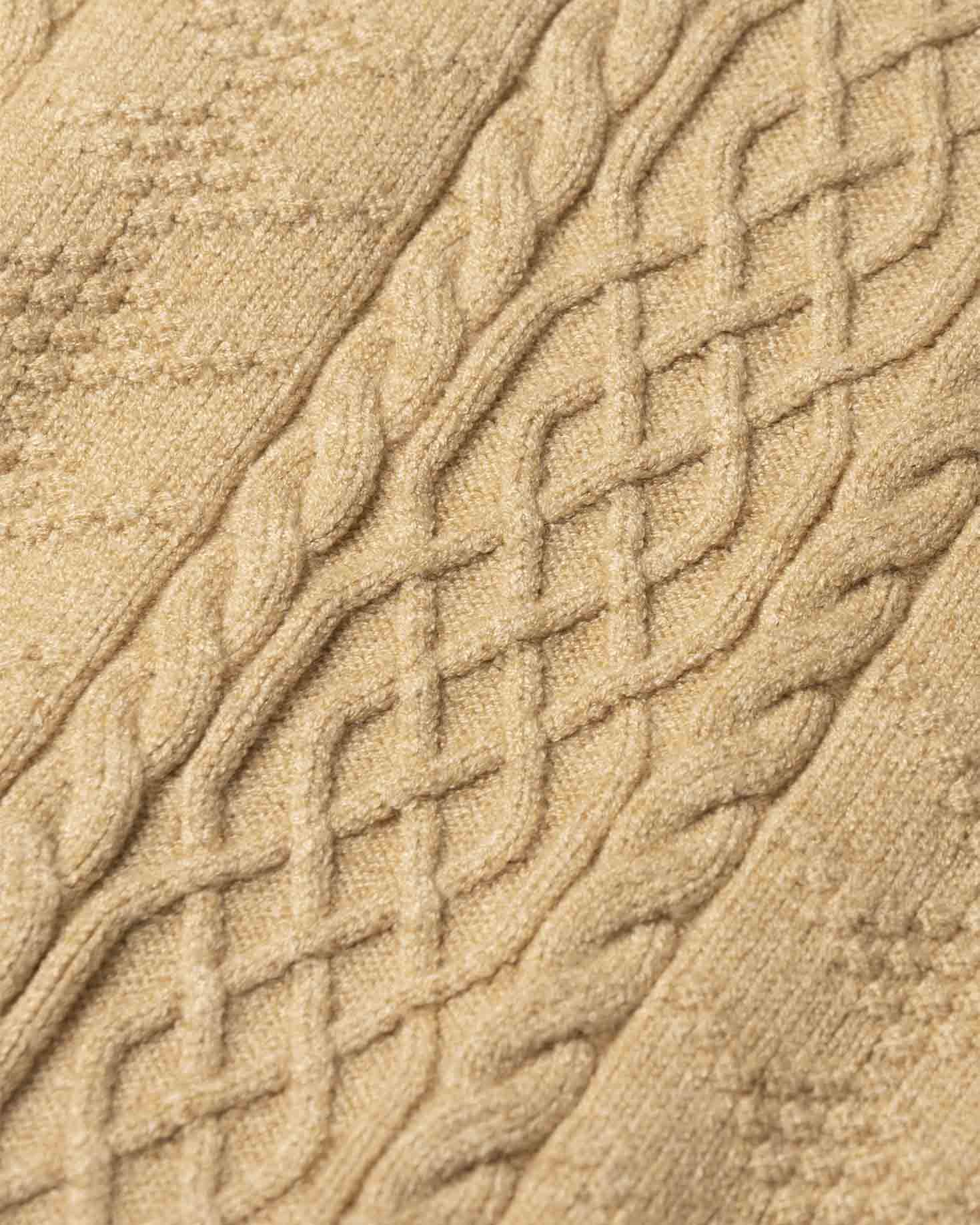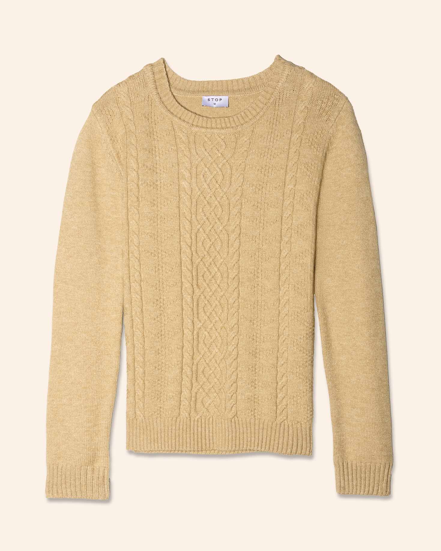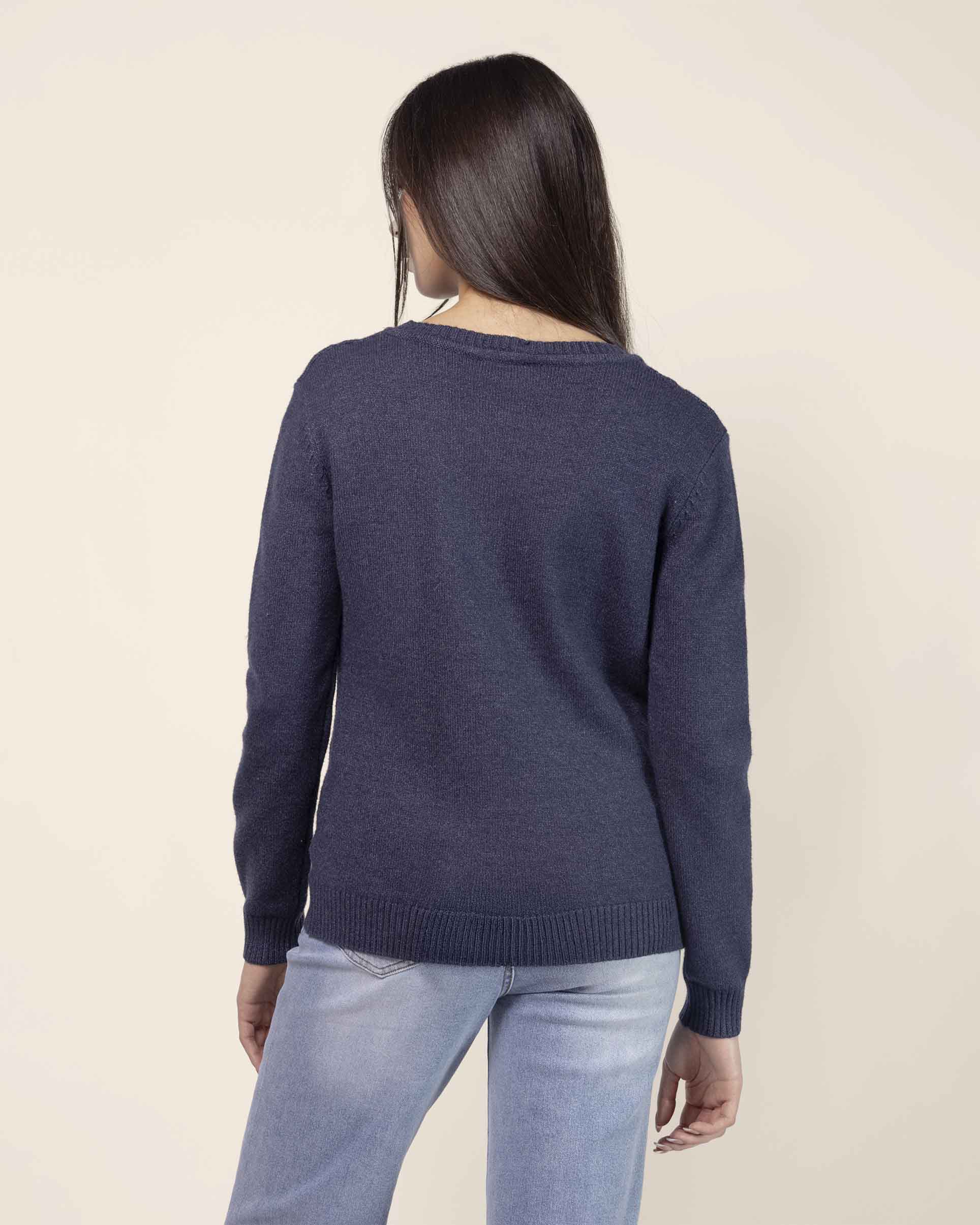 Suéter de punto, cuello redondo, con trenzas y rombos