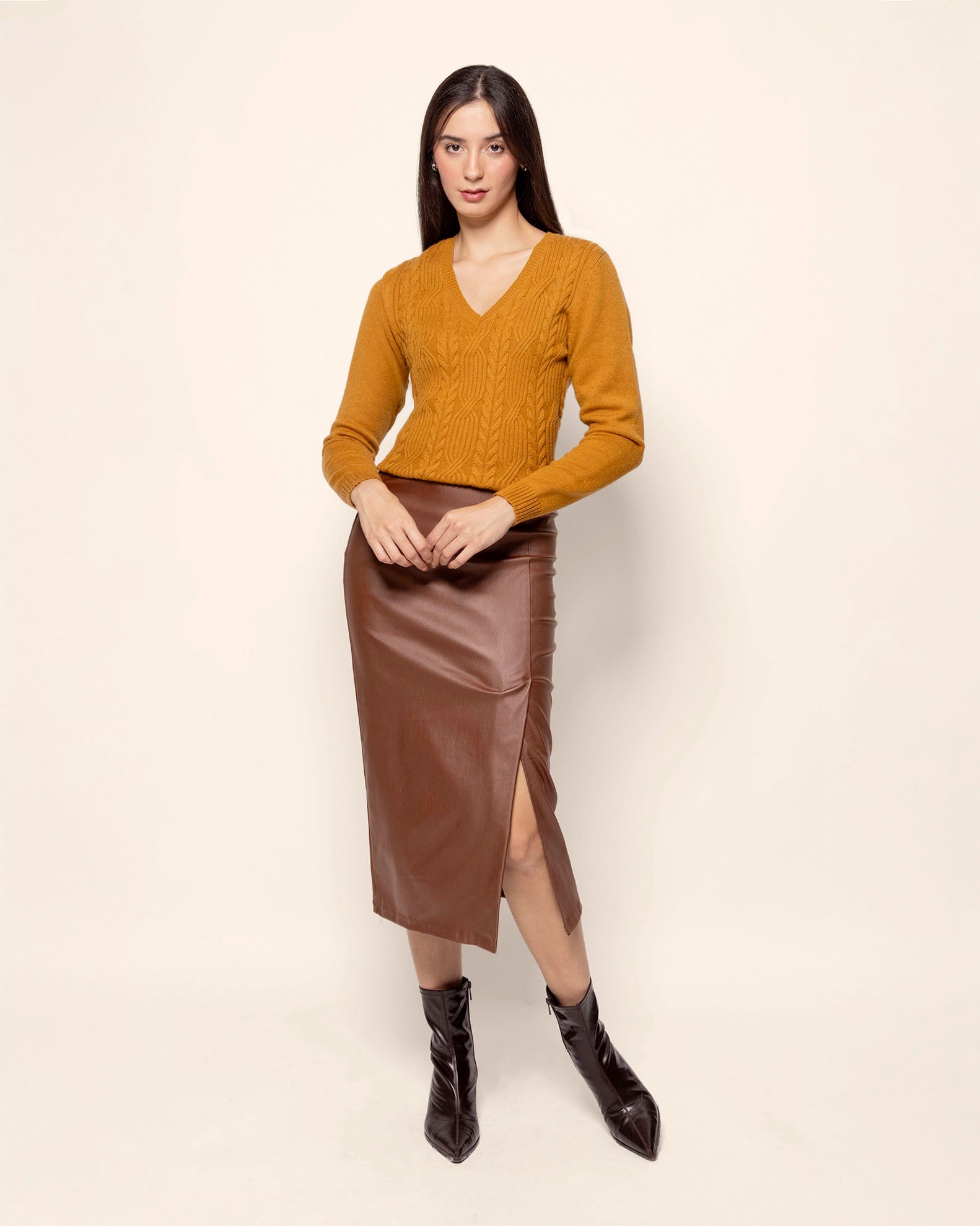 Suéter cuello V trenza ancha