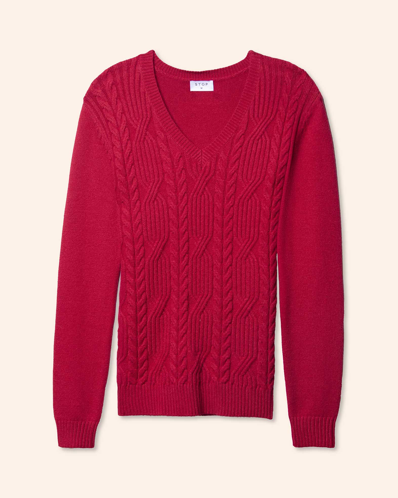 Suéter de punto, cuello V, con trenzas anchas