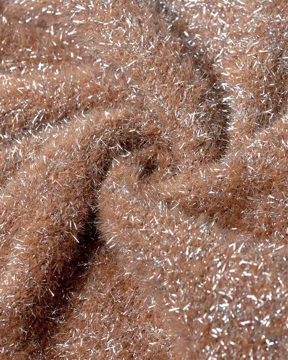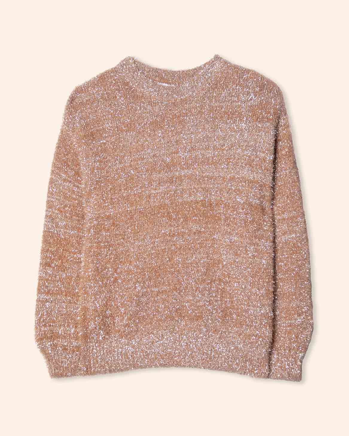 Suéter manga larga, cuello redondo, efecto pelo con brillo