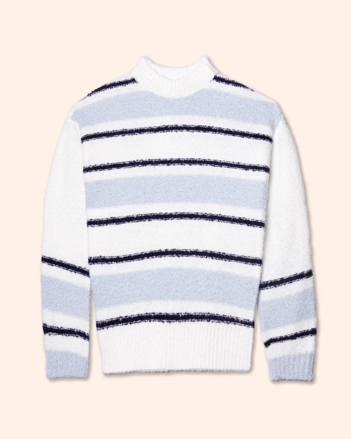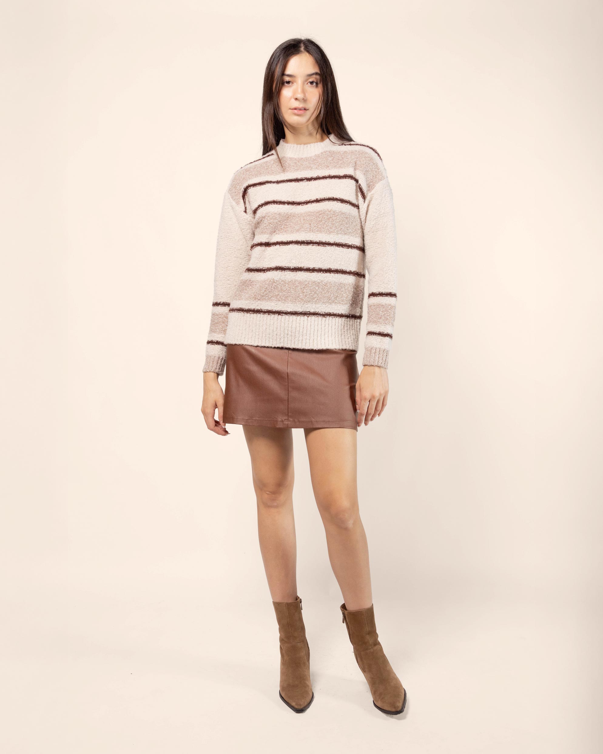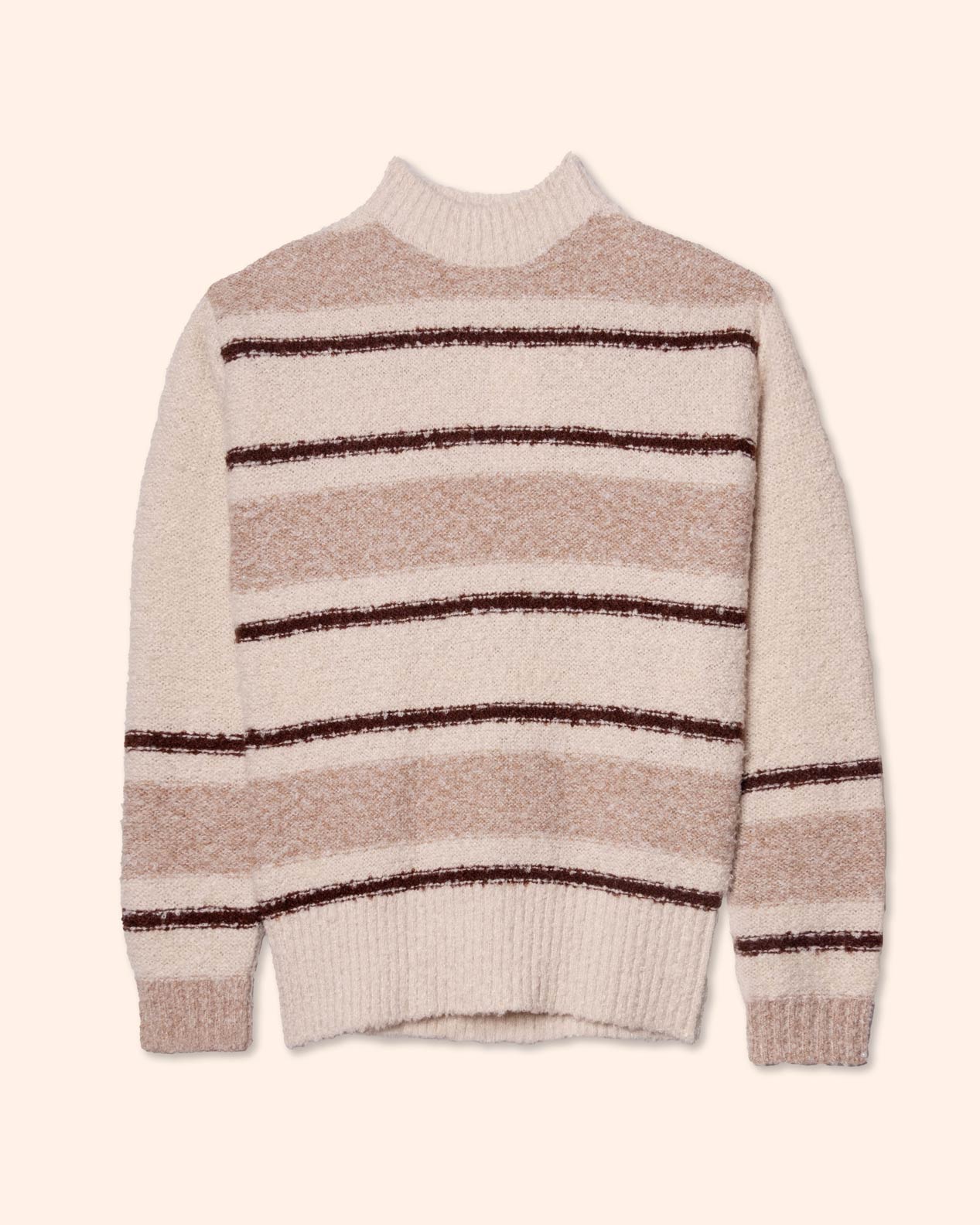 Suéter tejido, cuello mock, a rayas, tejido suave con textura