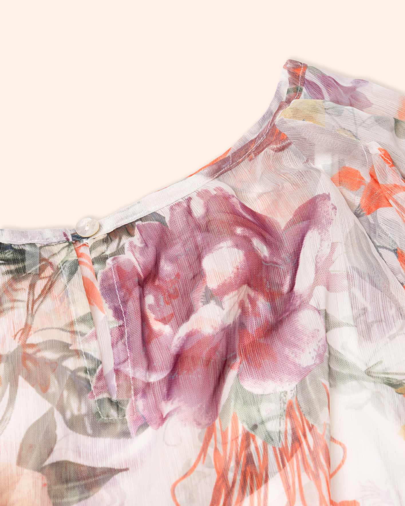 Vestido largo chifón estampado y olanes