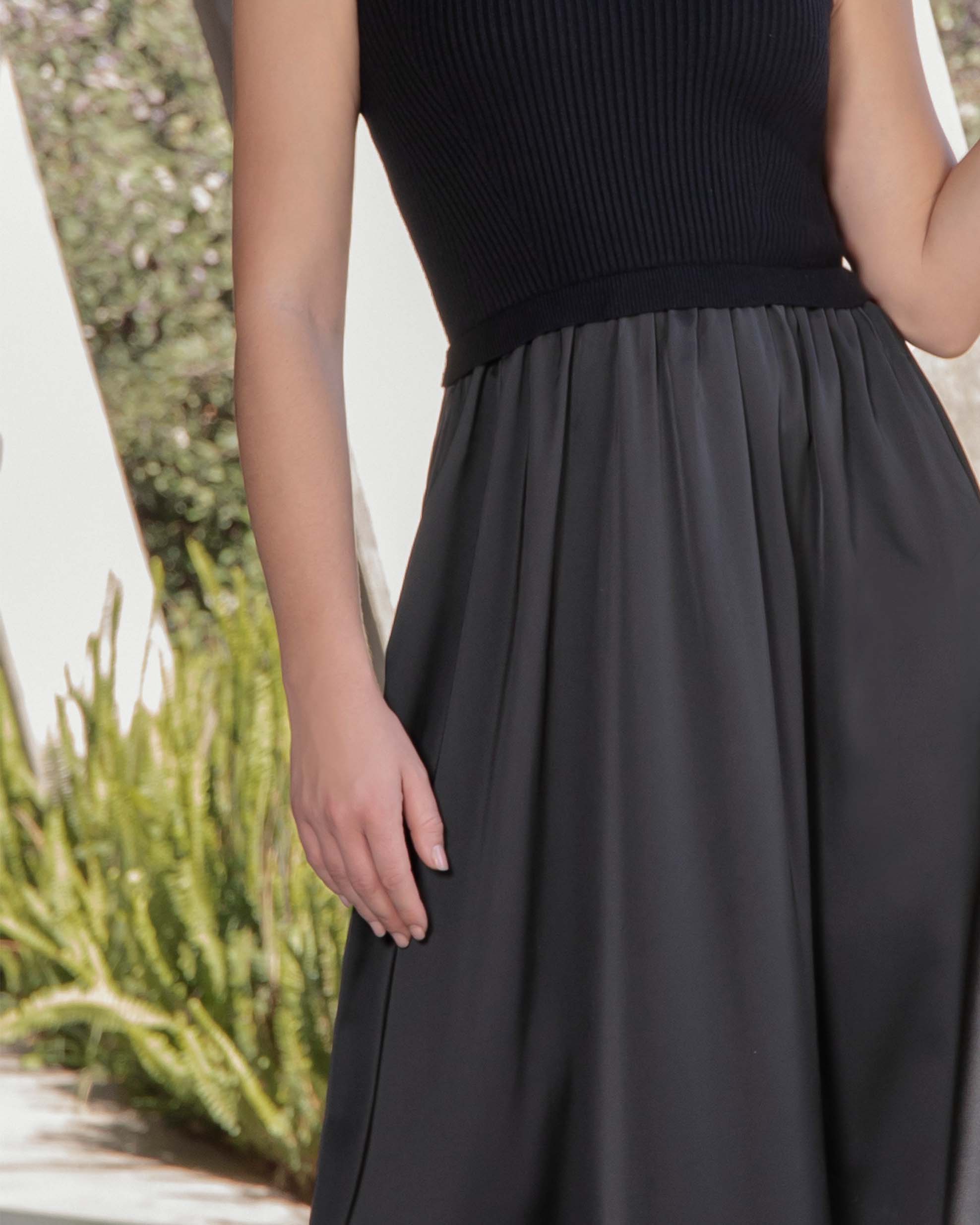 Vestido largo combinación telas