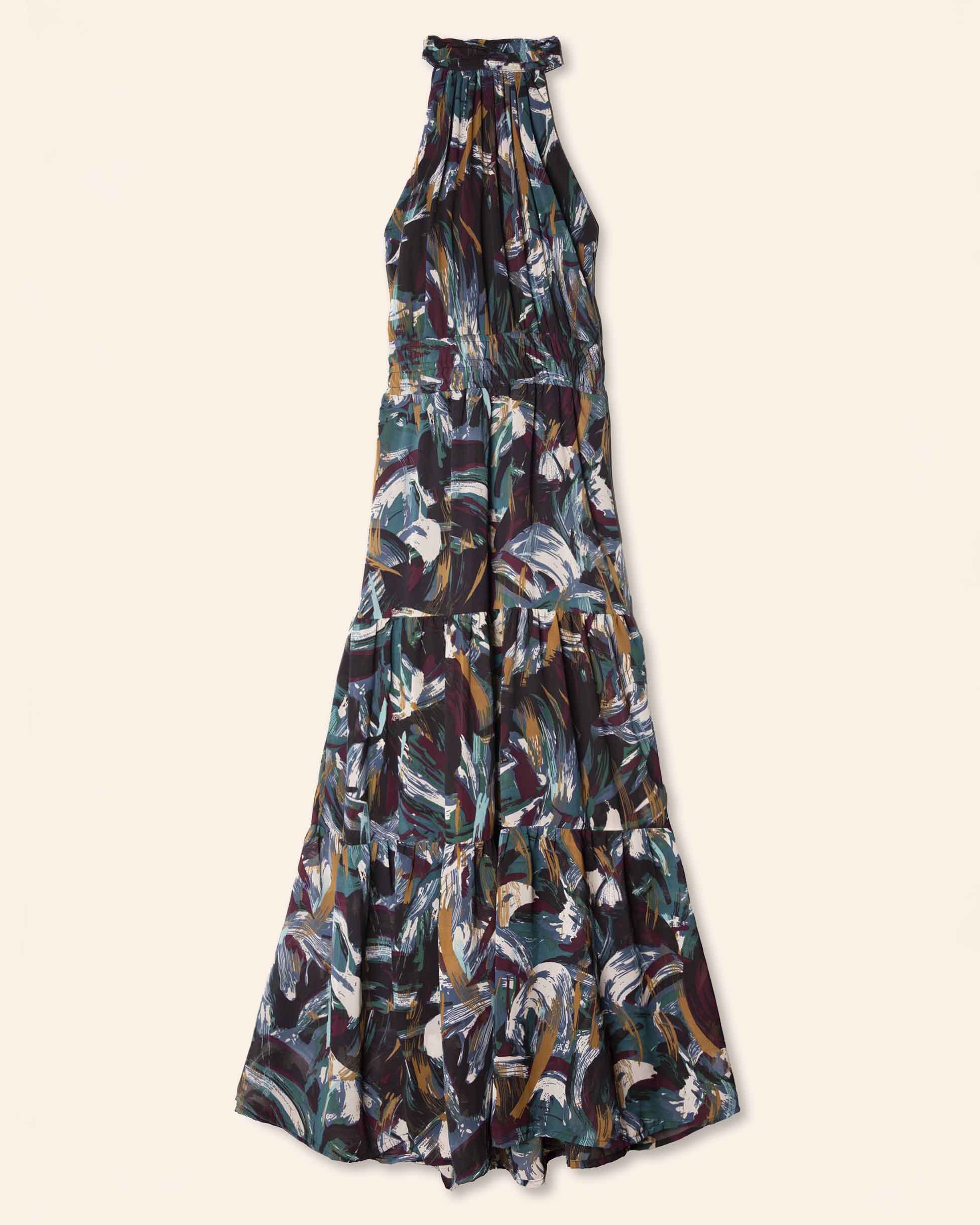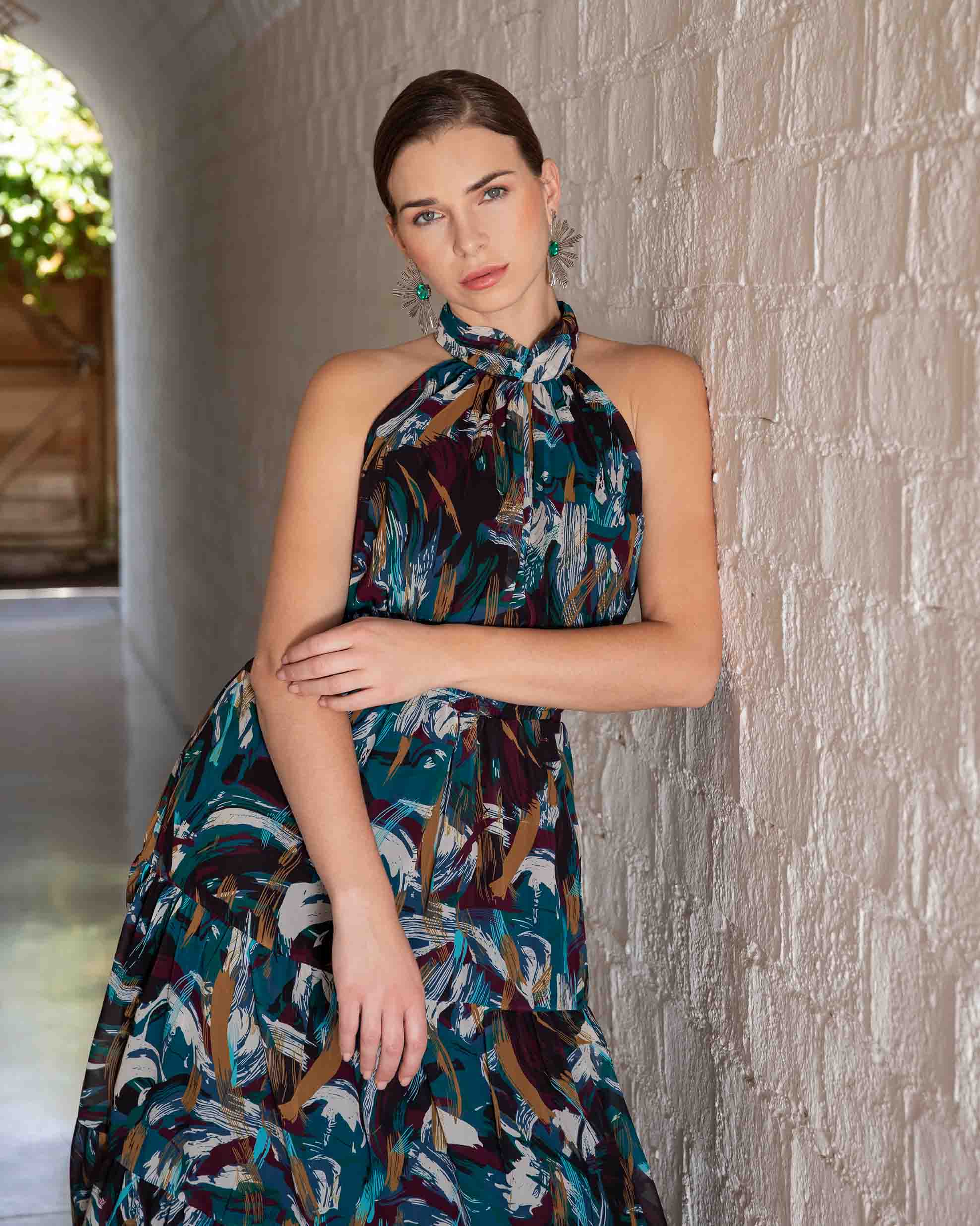 Vestido midi sin mangas, estampado, con smock en cintura que aporta confort